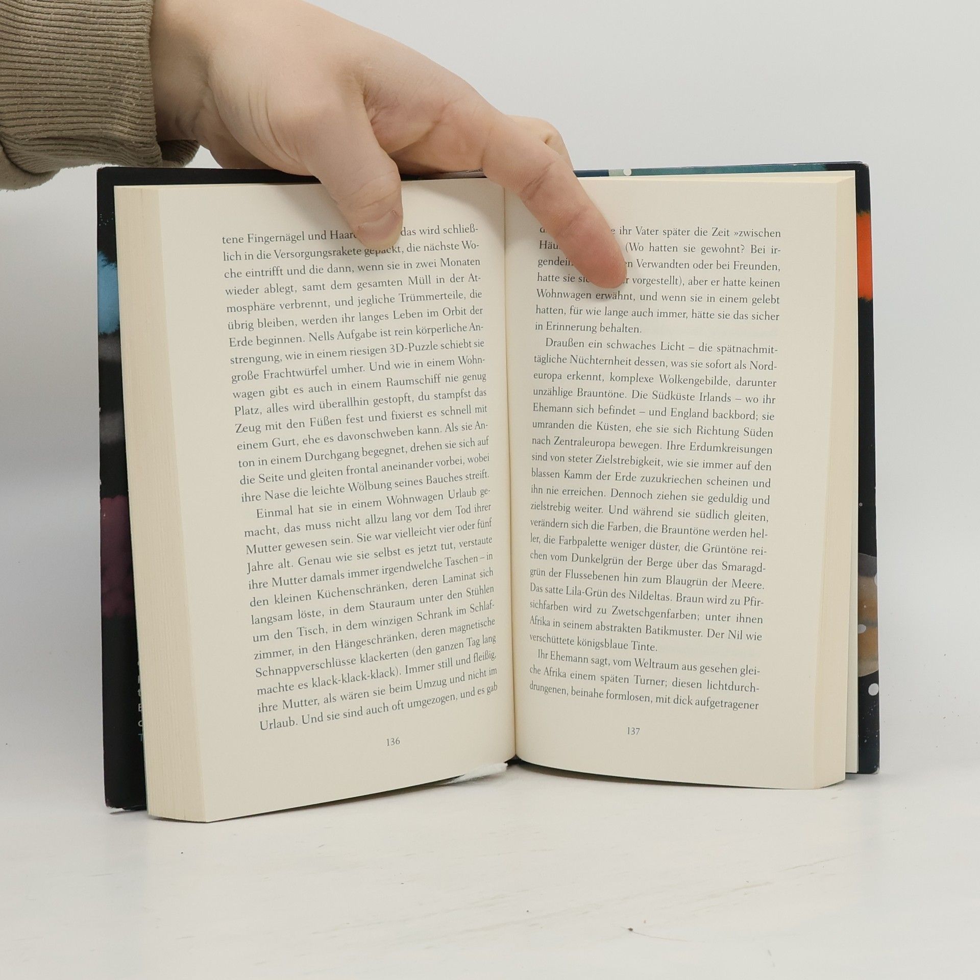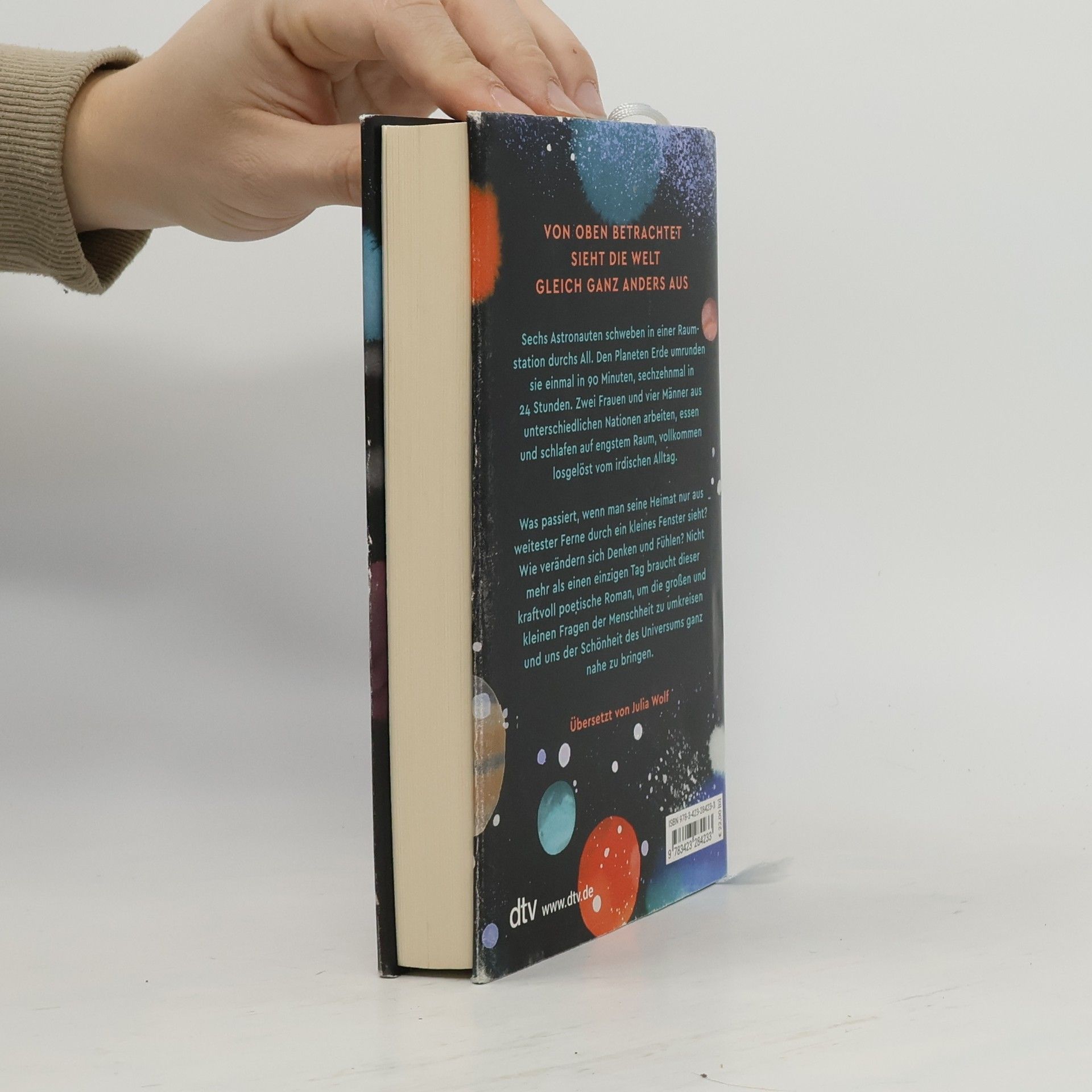 Sechs Astronauten leben und arbeiten in einer Raumstation, umkreisen die Erde in 90 Minuten und erleben die Schwerelosigkeit. Der Roman erkundet, wie sich Denken und Fühlen verändern, wenn man die Heimat aus der Ferne sieht, und behandelt die großen Fragen der Menschheit sowie die Schönheit des Universums.