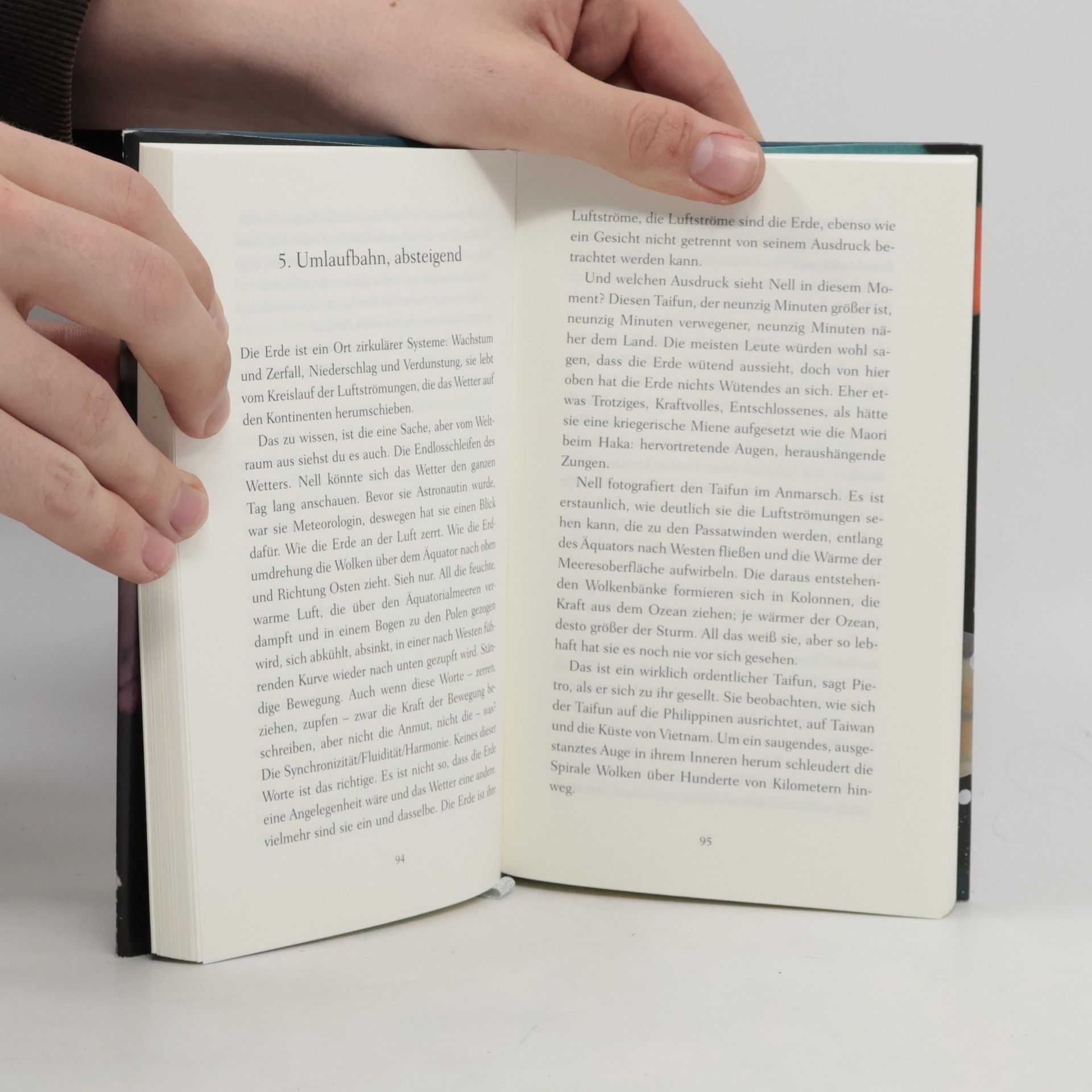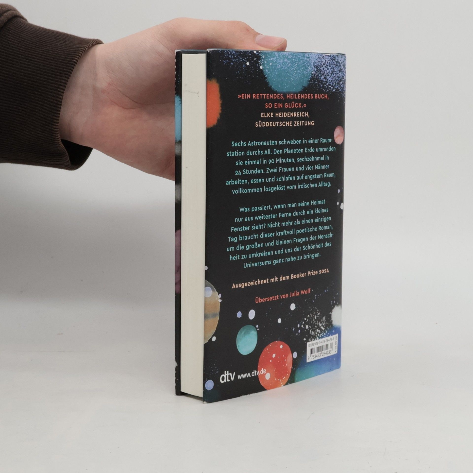 Sechs Astronauten leben und arbeiten in einer Raumstation, umkreisen die Erde in 90 Minuten und erleben die Schwerelosigkeit. Der Roman erkundet, wie sich Denken und Fühlen verändern, wenn man die Heimat aus der Ferne sieht, und behandelt die großen Fragen der Menschheit sowie die Schönheit des Universums.