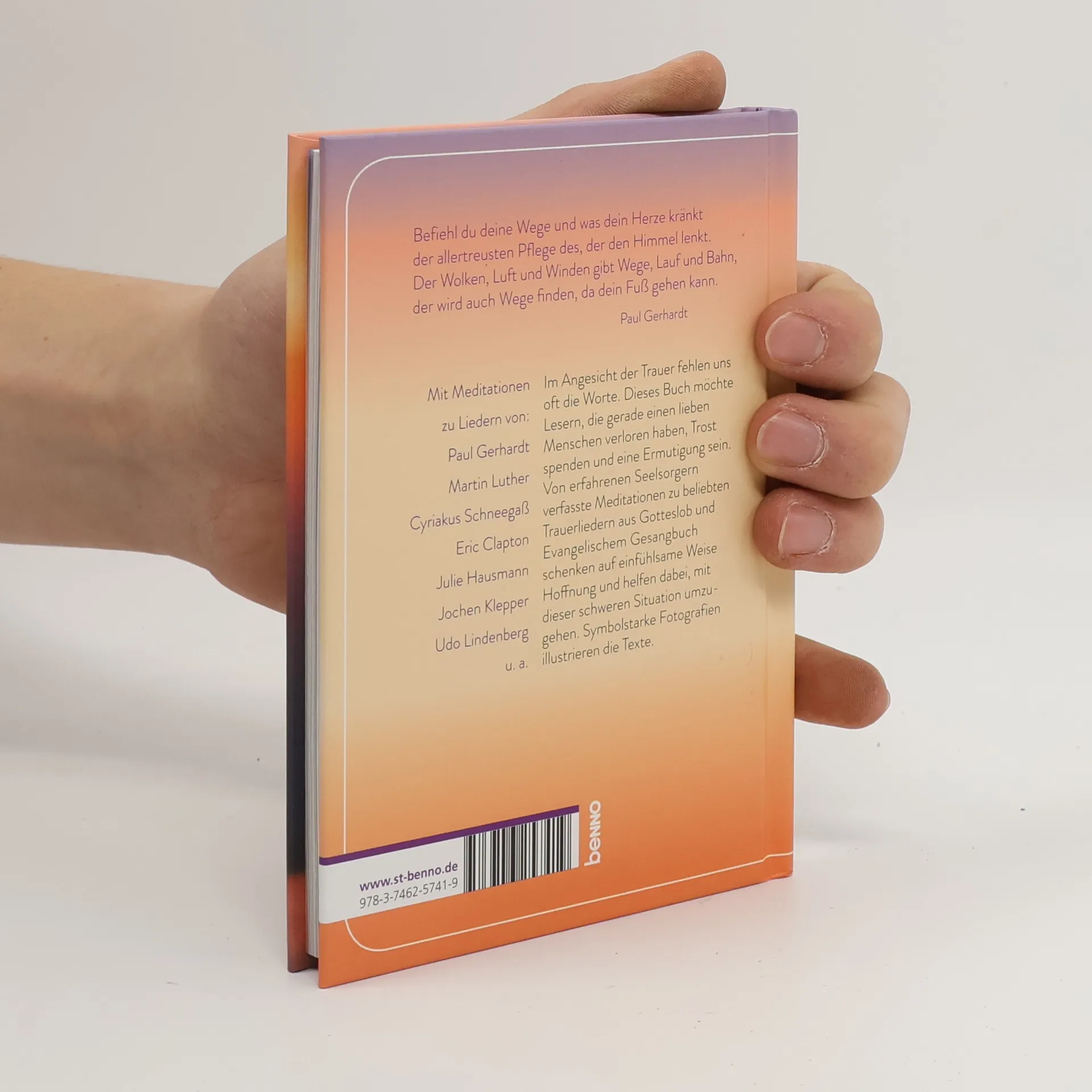 Dieses Buch bietet Trost und Ermutigung für Trauernde durch meditative Texte zu beliebten Trauerliedern. Es hilft, mit Verlust umzugehen und schenkt Hoffnung. Ausdrucksstarke Fotografien ergänzen die einfühlsamen Inhalte und machen es zu einem sensiblen Trauerbegleiter.