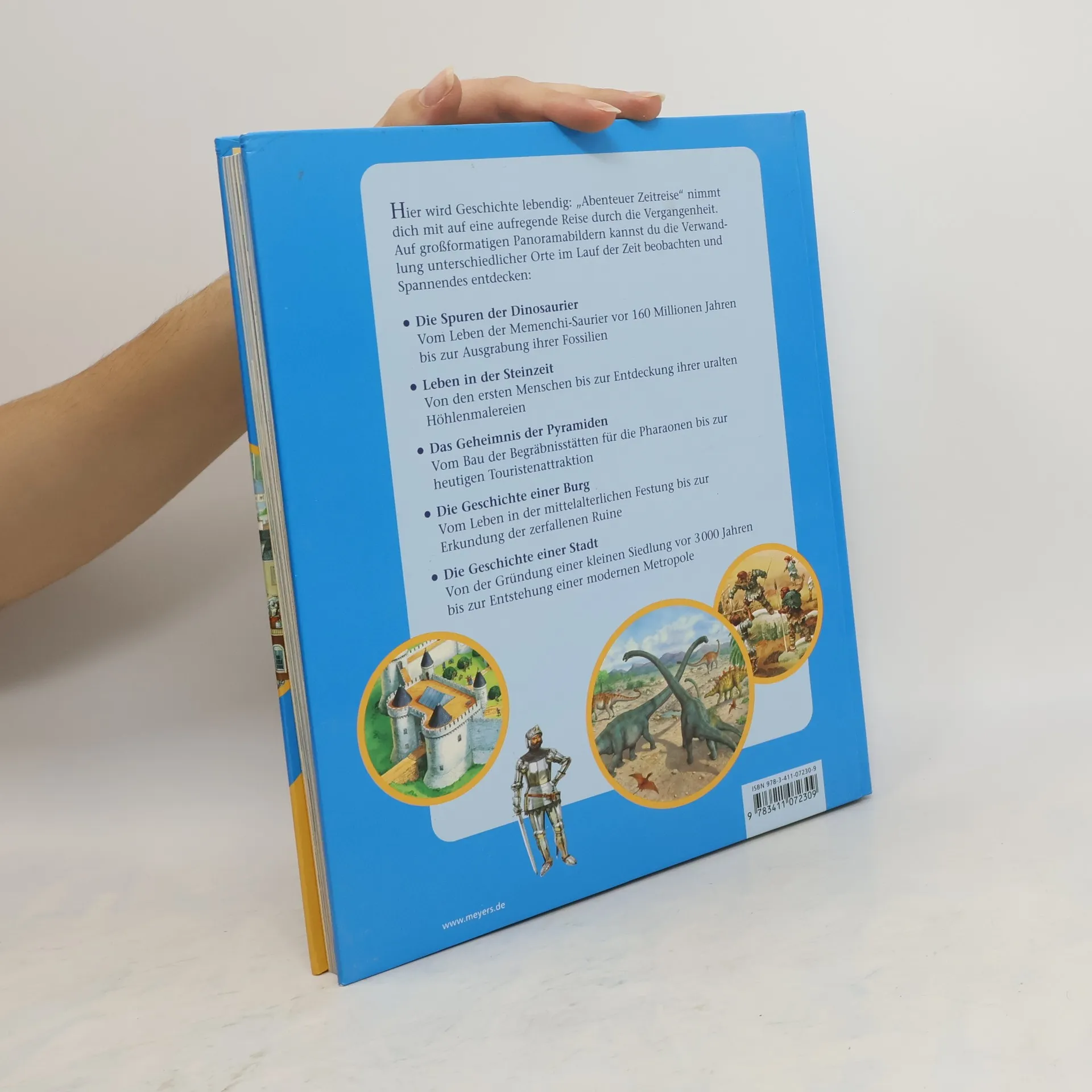 Der Sammelband "Abenteuer Zeitreise" entführt Leser zu aufregenden historischen Ereignissen und Orten, von Dinosauriern und der Steinzeit über das alte Ägypten bis zur Entstehung einer Stadt. 60 großformatige Panoramabilder zeigen den Wandel der Zeit und laden zum Entdecken ein.