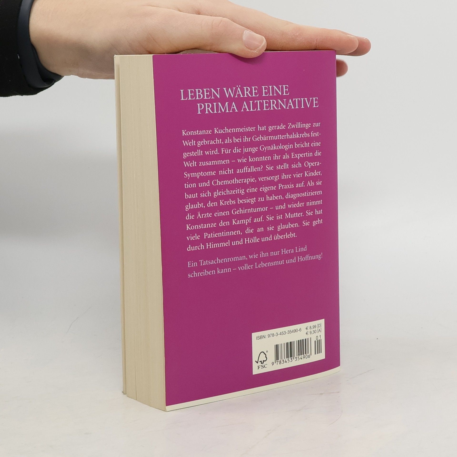 Leben wäre eine prima Alternative Die junge Gynäkologin Dr. Konstanze Kuchenmeister hat gerade ihre Zwillinge zur Welt gebracht, als bei ihr Gebärmutterhalskrebs festgestellt wird. Für die vierfache Mutter bricht eine Welt zusammen. Wie konnten ihr als Expertin die Symptome nicht auffallen? Doch voller Lebenswillen bekämpft sie die Krankheit, stellt sich Operation und Chemotherapie, versorgt ihre vier Kinder, baut sich gleichzeitig eine eigene Praxis auf. Als sie glaubt, den Krebs besiegt zu haben, diagnostizieren die Ärzte einen Gehirntumor ― und wieder nimmt Konstanze den Kampf auf. Sie ist Mutter. Sie hat viele Patientinnen, die an sie glauben. Sie geht durch Himmel und Hölle und überlebt.