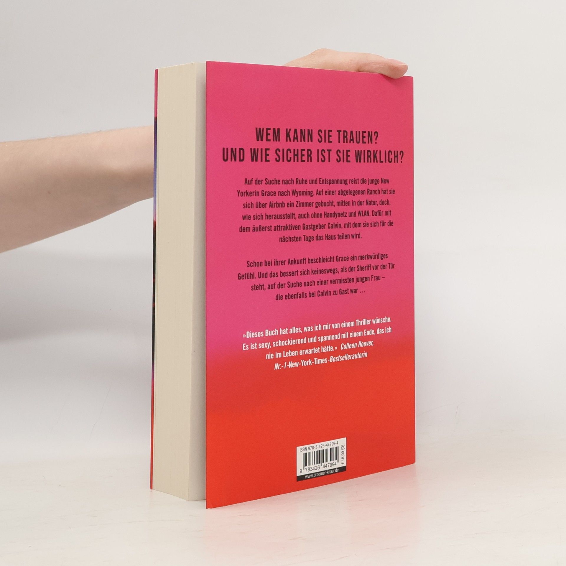 Ein spannender Airbnb-Thriller über die junge New Yorkerin Grace, die nach Wyoming reist, um Ruhe zu finden. In einer abgelegenen Ranch trifft sie auf ihren Gastgeber Calvin, doch ein unangenehmes Gefühl und das Verschwinden einer vorherigen Mieterin werfen Fragen auf. Jeneva Rose bietet unerwartete Wendungen und Nervenkitzel.