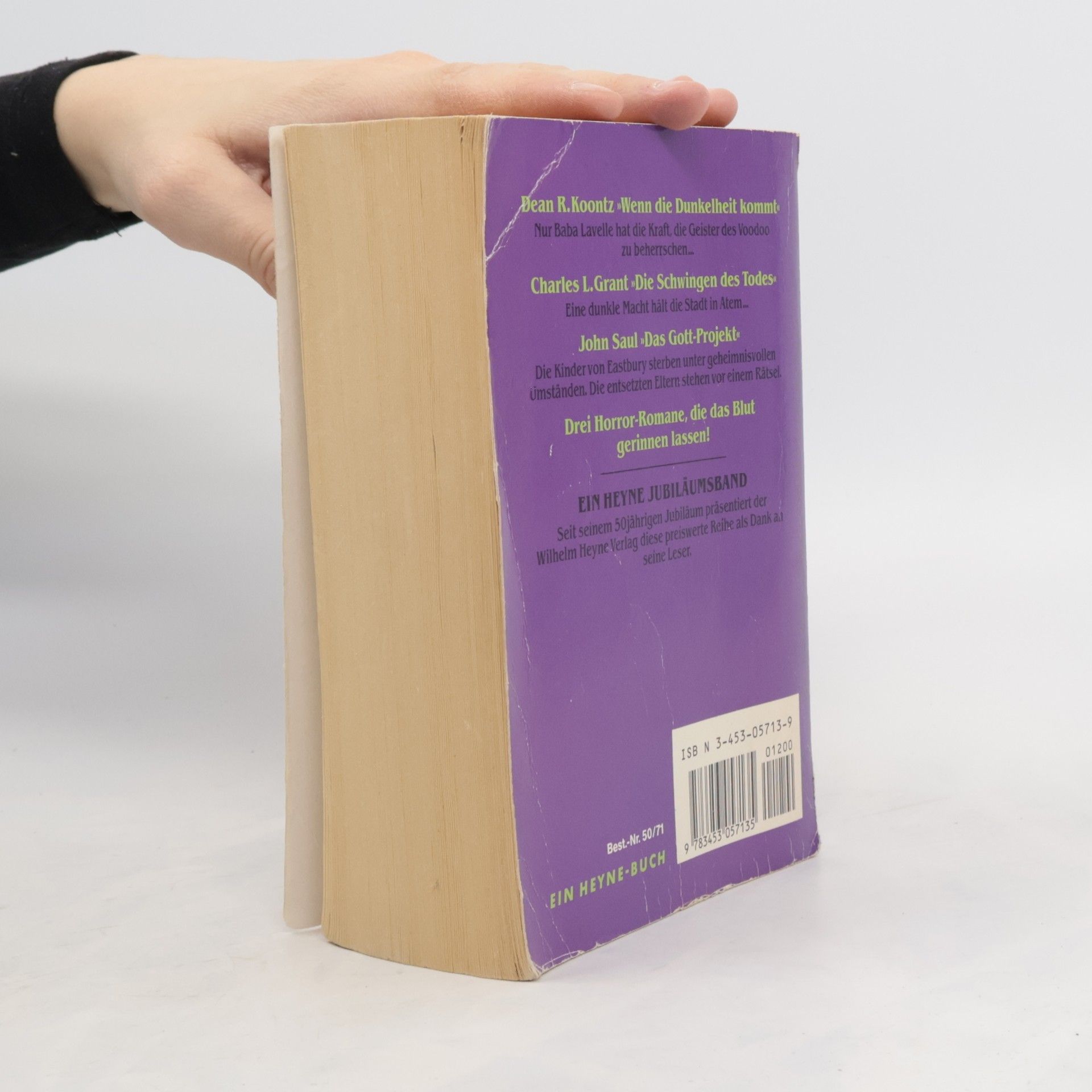 Eine Sammlung von drei spannenden Geschichten: "Wenn die Dunkelheit kommt" von Dean R. Koontz, "Die Schwingen des Todes" von Charles L. Grant und "Das Gott-Projekt" von John Saul, die zusammen 877 Seiten fesselnde Lektüre bieten.