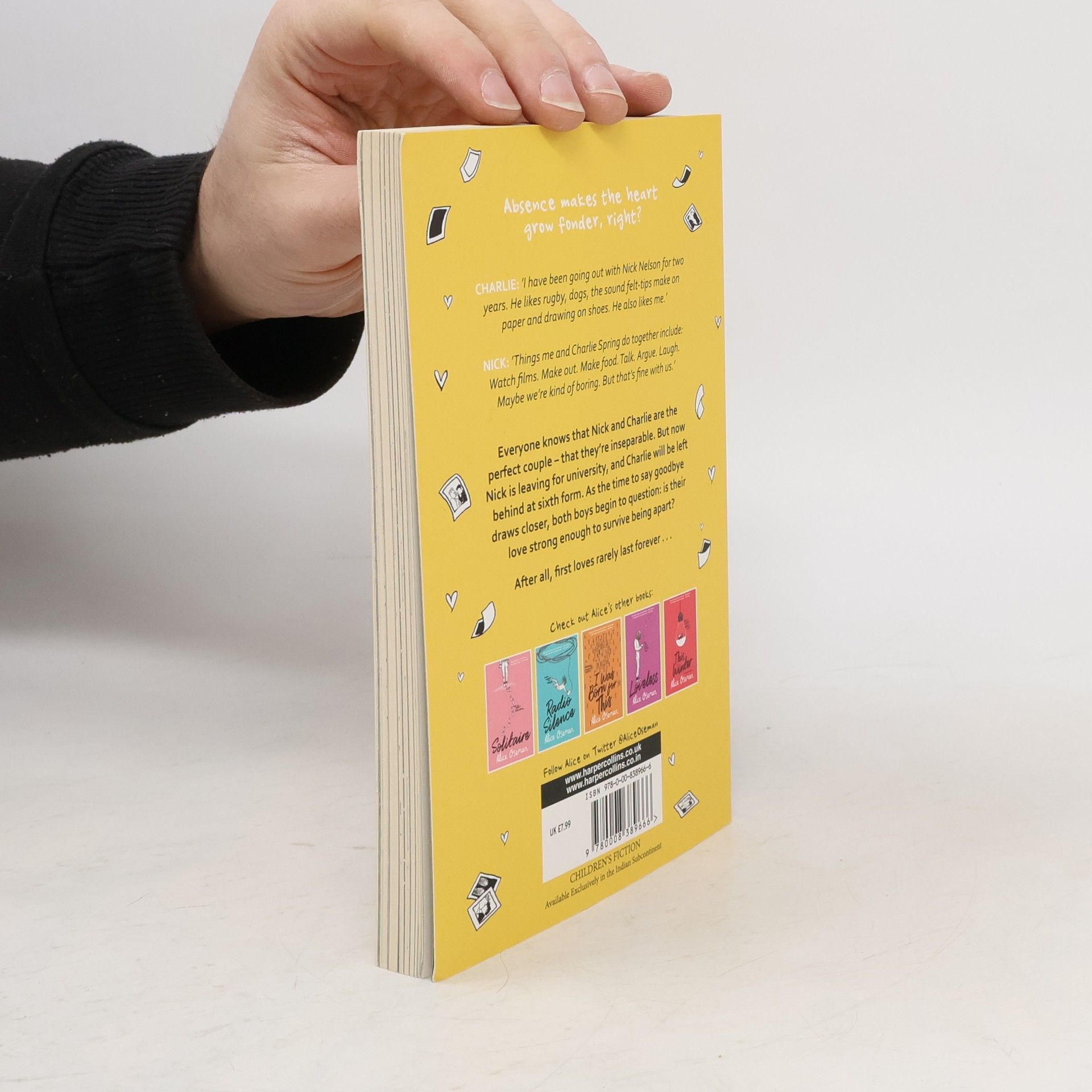 A SUNDAY TIMES TOP 5 CHILDREN'S BESTSELLER A short novella based on the beloved characters from Alice Oseman's acclaimed debut novel Solitaire and graphic novel series Heartstopper - now a major Netflix series. From the author of the 2021 YA Book Prize winning Loveless. Absence makes the heart grow fonder, right? CHARLIE: "I have been going out with Nick Nelson for two years. He likes rugby, Formula 1, dogs, the Marvel universe, the sound felt-tips make on paper, rain and drawing on shoes. He also likes me." NICK: "Things me and Charlie Spring do together include: Watch films. Sit in the same room on different laptops. Text each other from different rooms. Make out. Make food. Make drinks. Get drunk. Talk. Argue. Laugh. Maybe we're kind of boring. But that's fine with us." Everyone knows that Nick and Charlie are the perfect couple - that they're inseparable. But now Nick is leaving for university, and Charlie will be left behind at Sixth Form. Everyone's asking if they're staying together, which is a stupid question - they're 'Nick and Charlie' for God's sake! But as the time to say goodbye gets inevitably closer, both Nick and Charlie question whether their love is strong enough to survive being apart. Or are they delaying the inevitable? Because everyone knows that first loves rarely last forever...