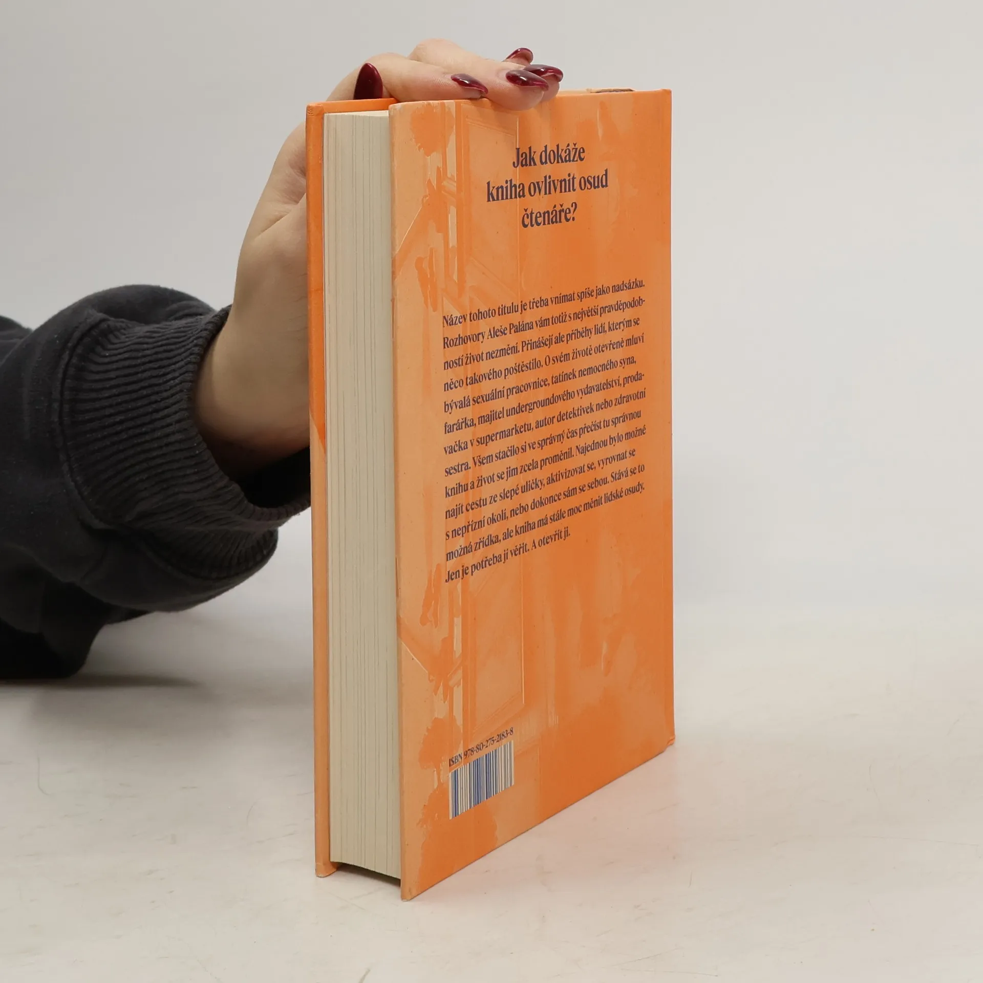 Jak literární dílo dokáže ovlivnit osud čtenáře? Název této knihy je třeba vnímat spíše jako nadsázku. Rozhovory Aleše Palána vám totiž s největší pravděpodobností život nezmění. Přinášejí ale příběhy lidí, kterým se něco takového poštěstilo. O svém životě otevřeněmluví bývalá sexuální pracovnice, tatínek nemocného syna, farářka, majitel undergroundového vydavatelství, prodavačka v supermarketu, autor detektivek nebo zdravotní sestra. Všem stačilo si ve správný čas přečíst tu správnou knihu a život se jim zcela proměnil. Najednou bylo možné najít cestu ze slepé uličky, aktivizovat se, vyrovnat se s nepřízní okolí, nebo dokonce sám se sebou. Stává se to možná zřídka, ale kniha má stále moc měnit lidské osudy. Jen je potřeba jí věřit. A otevřít ji.