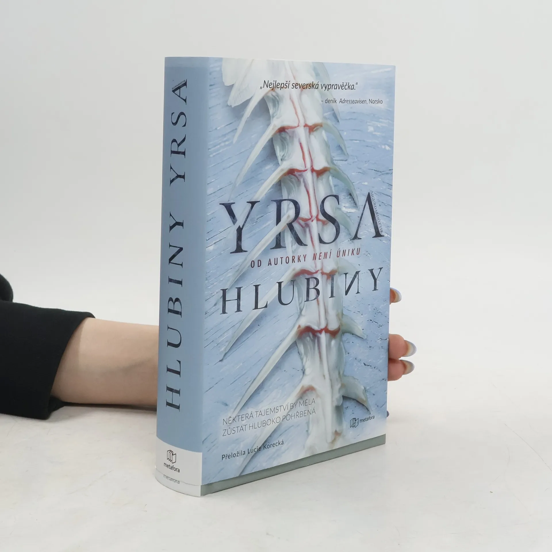V recyklačním centru v Reykjavíku je nalezena a exhumována kostra, která byla podle všeho pohřbena v zemi mnoho let. Policisté Týr a Karó nejsou k případu přiděleni, ale jsou požádáni, aby pomohli v sousedském sporu, který eskaloval do nebezpečných rozměrů. Zanedlouho se však ocitají uprostřed vyšetřování vraždy. Mezitím se mladá kuchařka Gunndís rozhodne jít ve stopách svého zesnulého otce a přijme dočasnou práci na palubě velké rybářské lodi. Když najde knihu, která otci patřila a která by měla být kdesi na dně moře, začne se obávat o svůj život. Ačkoli si to Týr a Karó zpočátku neuvědomují, všechny události jsou spojeny strašlivou nehodou před mnoha lety, kdy na moři vzplála rybářská loď a potopila se do hlubin oceánu i s posádkou uvězněnou uvnitř. Thriller Hlubiny je třetím dílem napínavé série Černý led Yrsy Sigur?ardóttir. Vychází v překladu Lucie Korecké.