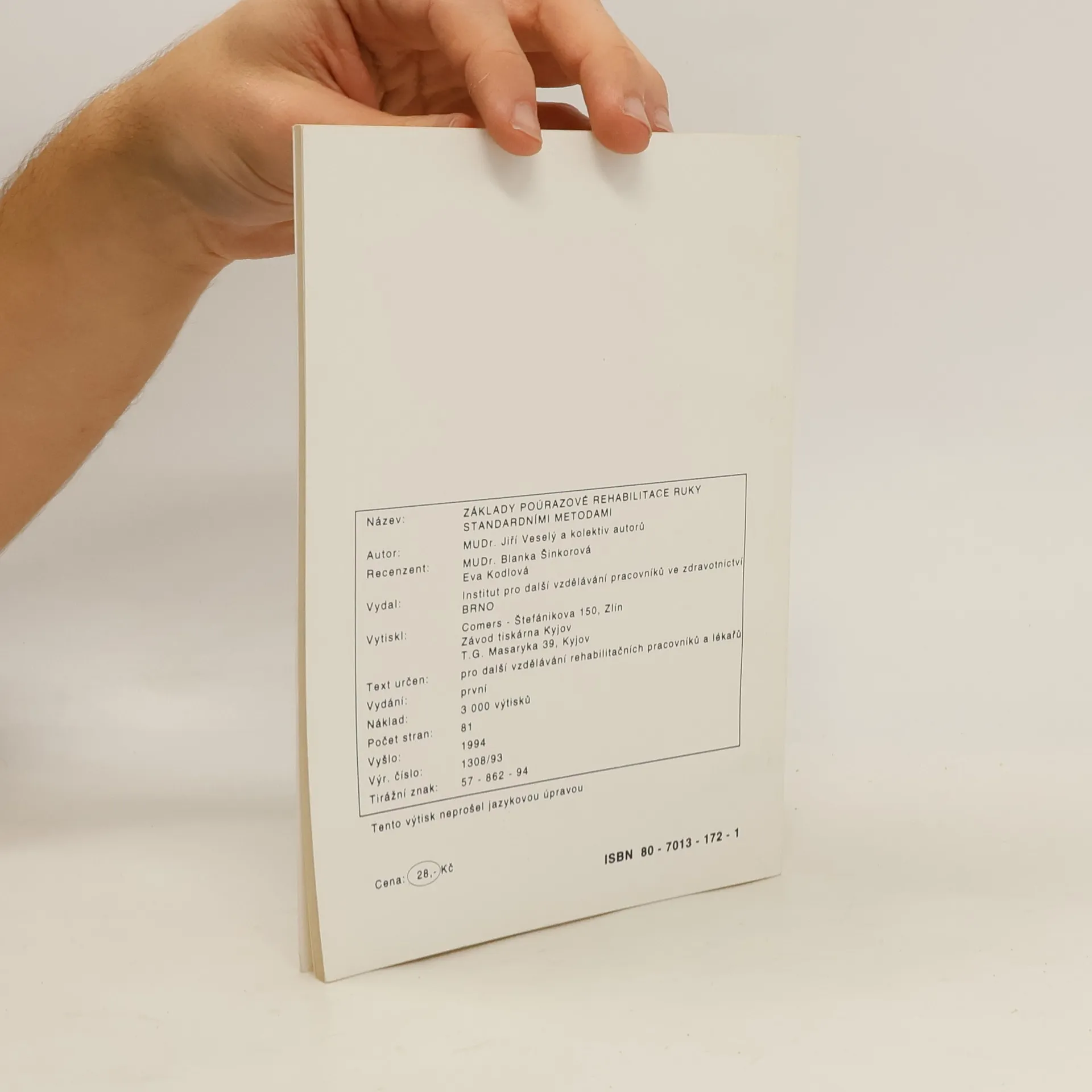 Základy poúrazové rehabilitace ruky standardními metodami, Jiří Veselý