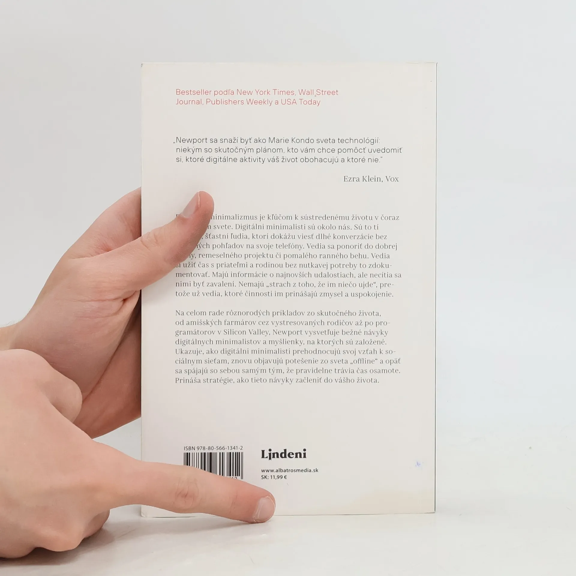 Technológie vo svojej podstate nie sú ani dobré, ani zlé. Kľúčom je používať ich na to, aby vám vo vašich cieľoch a hodnotách pomáhali, a nie nechať sa nimi využiť. Táto kniha vám ukáže ako na to. Na celom rade príkladov zo skutočného života vysvetľuje autor bežné návyky digitálnych minimalistov a myšlienky, na ktorých sú založené. Ukazuje, ako prehodnotiť svoj vzťah k sociálnym sieťam, znovu objaviť potešenie zo sveta „offline“ a prináša stratégie, ako tieto návyky začleniť do vášho života.