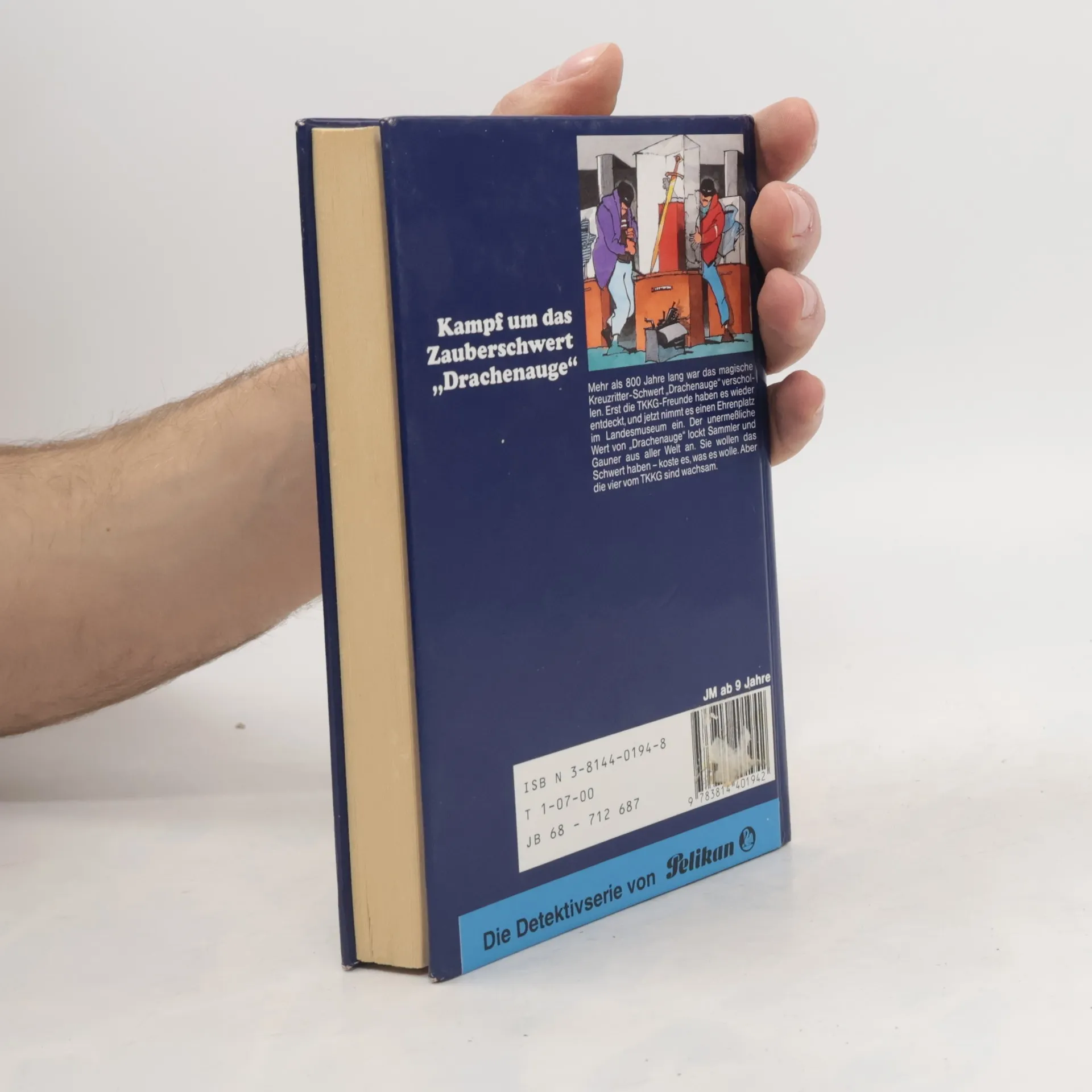 Mehr als 800 Jahre lang war das magische Kreuzritter-Schwert Drachenauge verschollen. Erst die TKKG-Freunde kommen dem Geheimnis auf die Spur, wo sich das Schwert verbirgt. Sie geraten in eine gefährliches Labyrinth unter einer Burg und merken dort, daß sie nicht die einzigen sind, die das Rätsel von Drachenauge lösen wollen. Skrupellose Verbrecher wollen die unersetzliche Waffe zu klingender Münze machen und im Ausland verschwinden lassen...