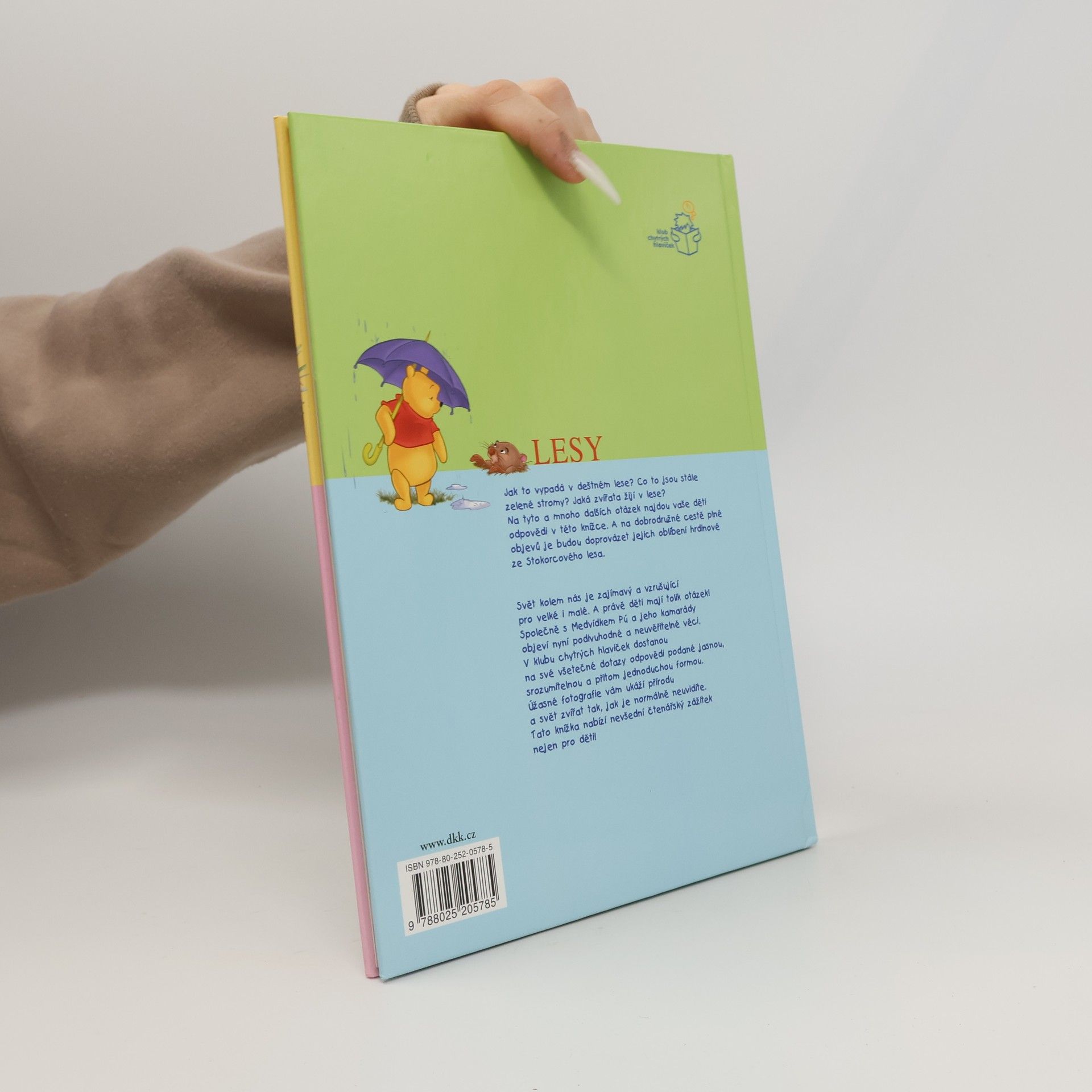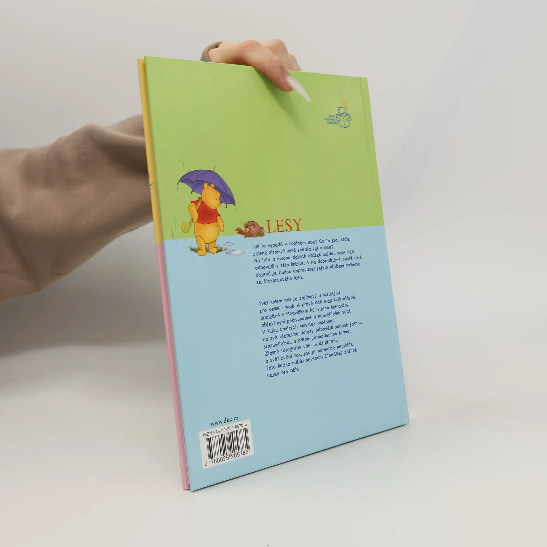 Kniha z edice Medvídek Pú moje první kniha je bohatě ilustrovanou encyklopedií pro nejmenší děti. V úvodu je text věnovaný rodičům, potom úvodní Púovo přemýšlení, které uvede k tématu a dále už následuje naučná část tvořená formou otázek a odpovědí doplněných spoustou obrázků tentokrát k tématu Lesy. Poslední dvojstrana je jakýmsi testem toho, jestli děti dávaly při čtení pozor a něco se naučily. Celou knihou provádějí a při učení pomáhají medvídek Pú a jeho kamarádi tygr, prasátko a klokánek, kteří nám pomohou s odpověďmi na všetečné dětské otázky (Jak to vypadá v deštném lese? Co to jsou stále zelené stromy? Jaká zvířata žijí v lese?)