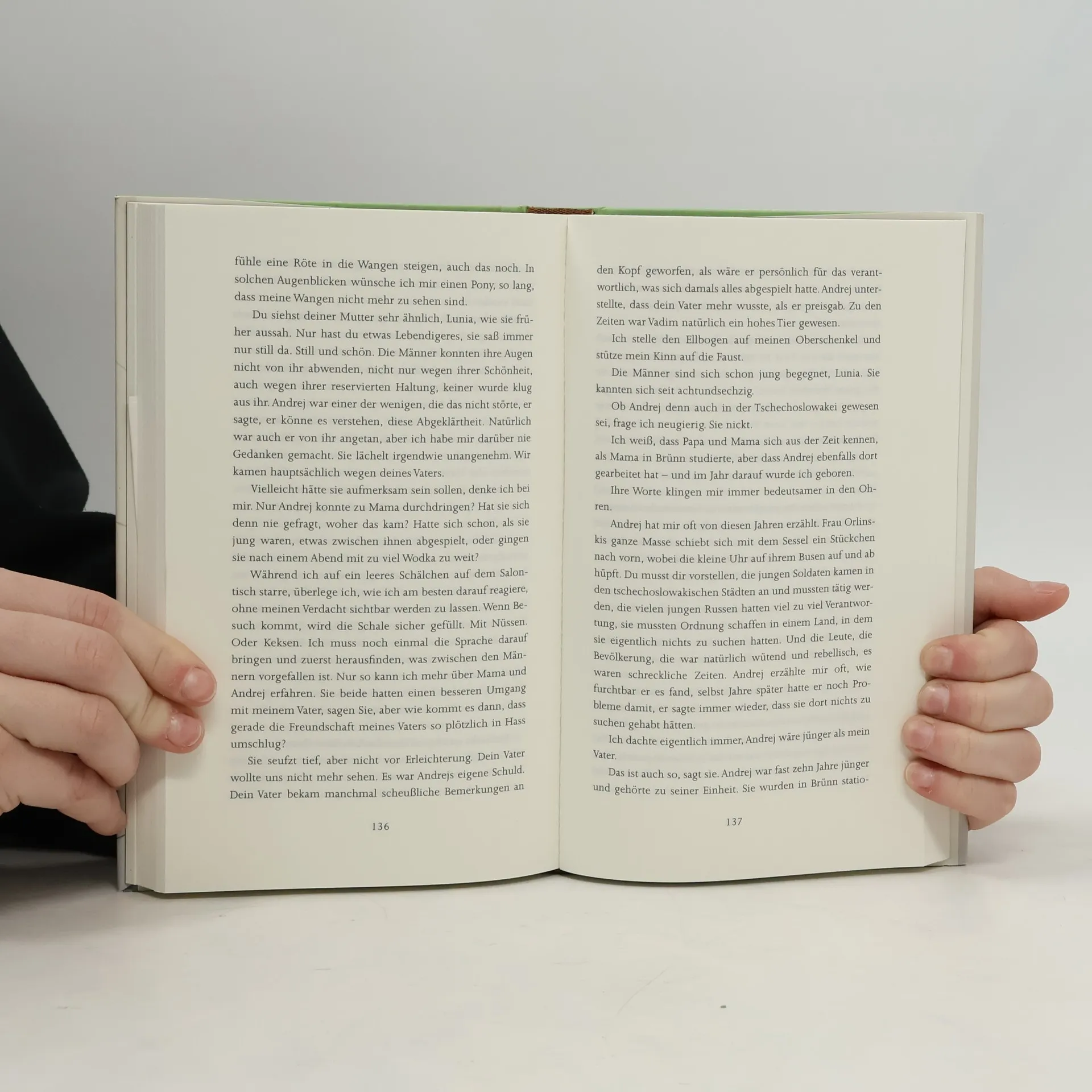 Lunia, eine russische Maklerin, fühlt sich in ihrer neuen Heimat fremd. Ihr taubstummer Sohn und die strengen Erwartungen ihres Mannes belasten sie zusätzlich. Als ihr Vater krank wird, entdeckt sie ein lange verborgenes Familiengeheimnis, das mit der Vergangenheit ihrer Mutter in Prag 1968 verknüpft ist. Ariëlla Kornmehl erzählt sensibel von Liebe und Identität.