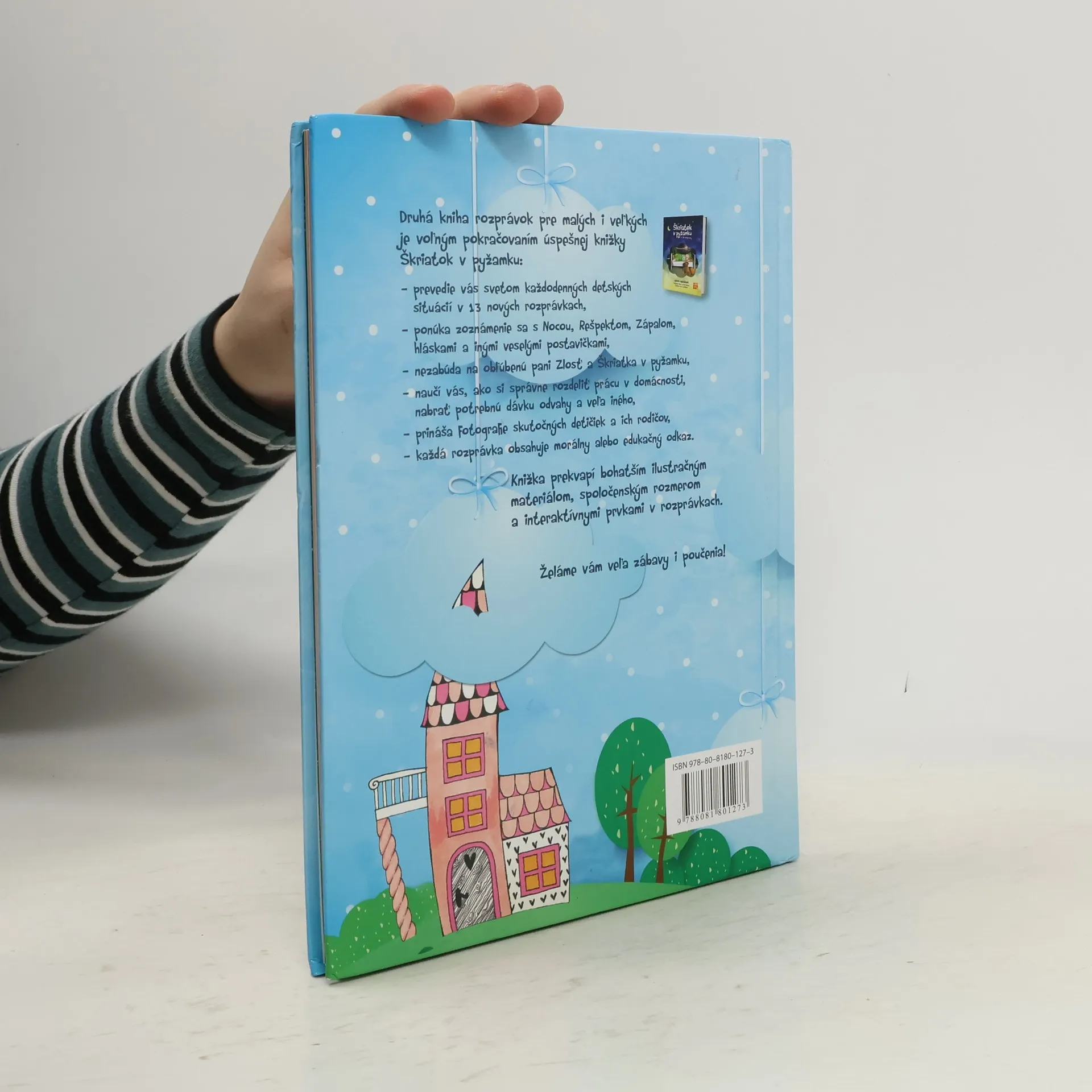 Pani Zlosť sa vracia!Druhá knižka rozprávok pre malých aj veľkých je voľným pokračovaním úspešnej knižky Škriatok v pyžamku. Prevedie vás svetom každodenných detských situácií v 13 nových rozprávkach. Hlavní hrdinovia sa popasujú so zápalom v ušku, s trénovaním výslovnosti hlásky R, s obhrýzaním nechtíkov, s nechuťou podeliť sa o hojdačku s inými deťmi, s nočným vybiehaním z postieľky a s ďalšími detskými trampotami.Knižka je ideálnym návodom pre rodičov na zvládnutie výchovných problémov s vtipom a ľahkosťou. Ponúka zoznámenie sa s Nocou, Rešpektom, bacilmi Helom a Monelou a inými veselými postavičkami. Nezabúda ani na obľúbenú pani Zlosť a Škriatka v pyžamku. Knižka prekvapí bohatším ilustračným materiálom, spoločenským rozmerom a interaktívnymi prvkami v rozprávkach.Knižka je vhodná pre čitateľov od 3 rokov.