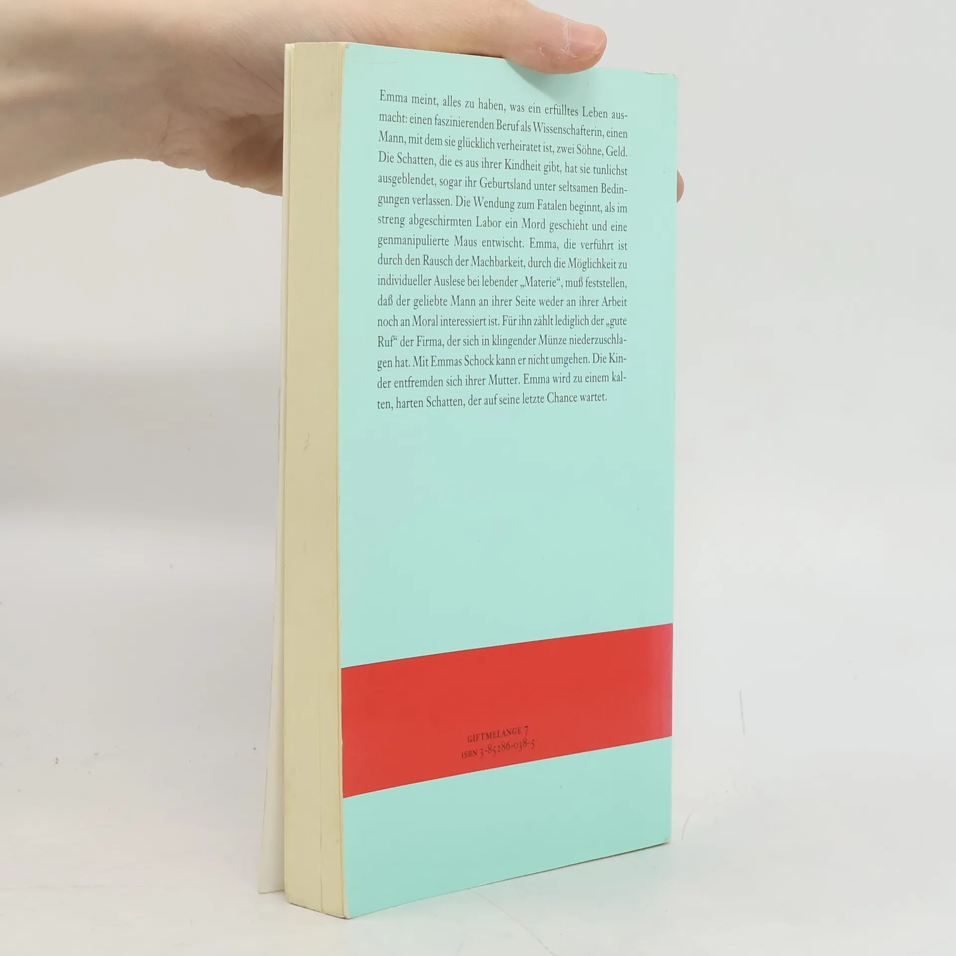 Emma scheint ein perfektes Leben zu führen: eine erfolgreiche Wissenschaftlerin, glücklich verheiratet und mit zwei Söhnen. Doch als ein Mord im Labor passiert und eine genmanipulierte Maus entkommt, wird ihr Leben auf den Kopf gestellt. Ihr Mann interessiert sich nur für den Ruf der Firma, während sich ihre Kinder von ihr entfremden. Emma verwandelt sich in einen kalten Schatten ihrer selbst.
