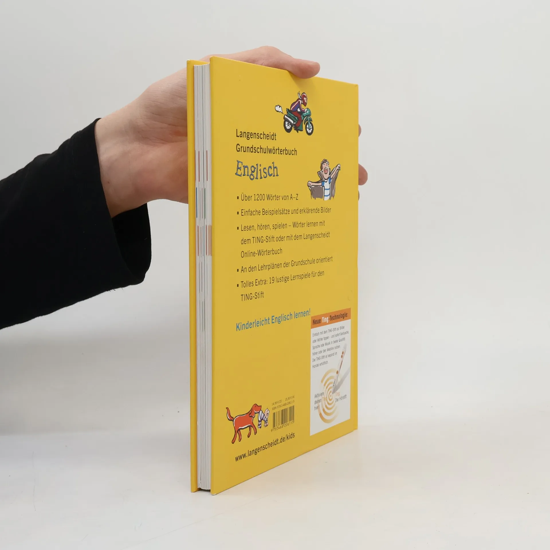 Ein zeitgemäßes Wörterbuch für Grundschulkinder mit über 1200 englischen Wörtern, Beispielsätzen und Illustrationen. Es enthält 20 illustrierte Themenseiten mit Aufgaben und Spielen für den Ting-Stift. Die Wörter sind alphabetisch geordnet und orientieren sich an den Lehrplänen der Grundschule. Ting-Stift nicht enthalten.