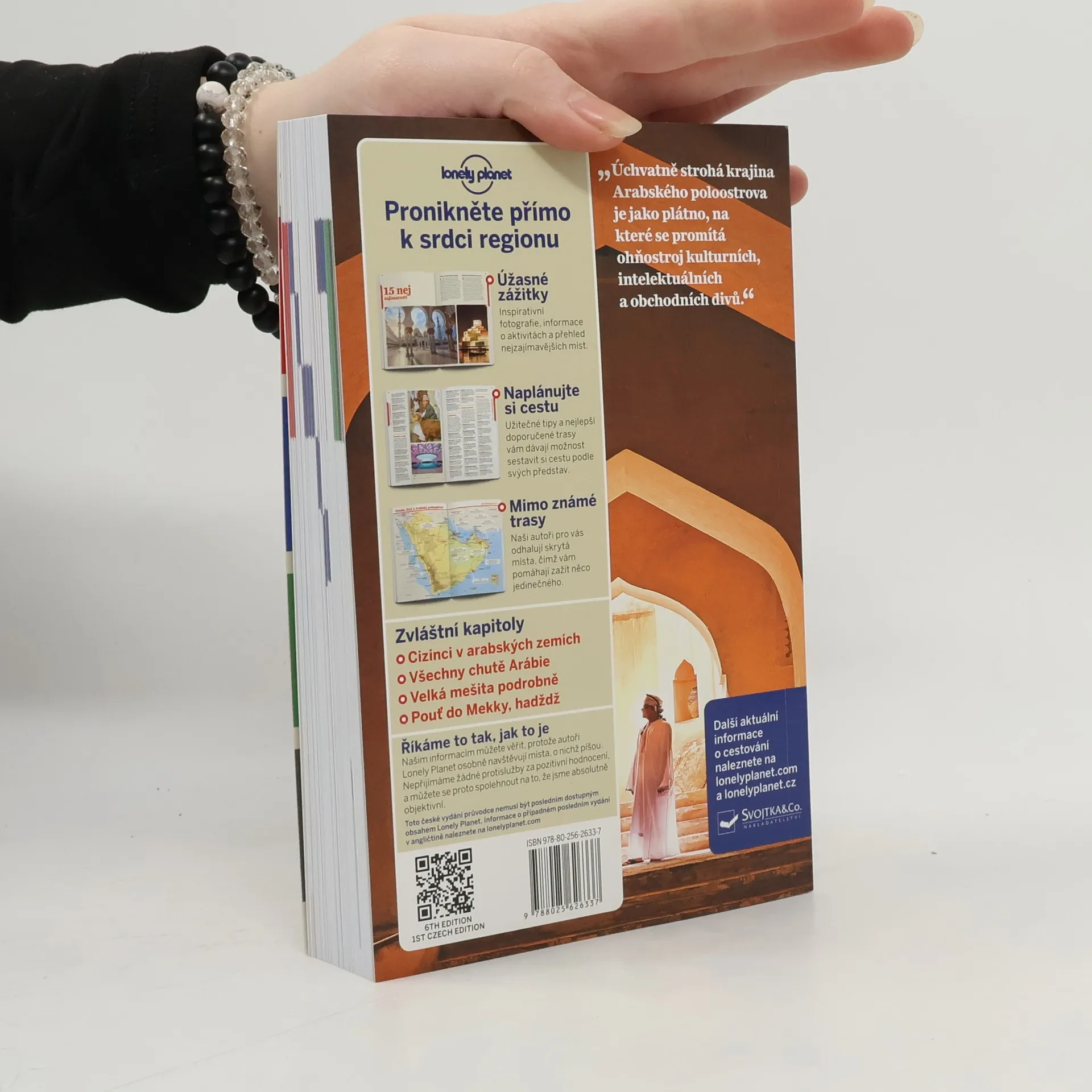 Úchvatně strohá krajina Arabského poloostrova je jako plátno, na které se promítá ohňostroj kulturních, intelektuálních a obchodních divů. Průvodce pokrývá tyto státy: Bahrajn, Kuvajt, Omán, Katar, Saúdská Arábie, Spojené arabské emiráty, Jemen S tímto průvodcem z proslulé edice Lonely Planet se dostanete přímo k srdci regionu! Úžasné zážitky inspirativní fotografie, informace o aktivitách a nejzajímavější místa Naplánujte si dokonalý výlet užitečné tipy na cestu a nejlepší navrhované trasy vám dávají možnost sestavit si cestu podle vlastních představ Mimo vyšlapané cesty naši autoři pro vás odhalují skrytá místa, čímž vám pomáhají zažít něco jedinečného a neopakovatelného Tipy na hotely, outdoorové aktivity, pozorování divočiny a další zasvěcené informace Zvláštní kapitoly: Cizinci v arabských zemích Všechny chutě Arábie Velká mešita podrobně Pouť do Mekky, hadždž Říkáme to tak, jak to je Našim informacím můžete věřit, protože autoři Lonely Planet osobně navštěvují místa, o nichž píšou, a při sběru informací pro každé nové vydání se k nim vracejí znovu. Nepřijímáme žádné protislužby za pozitivní hodnocení a můžete se spolehnout na to, že jsme objektivní.
