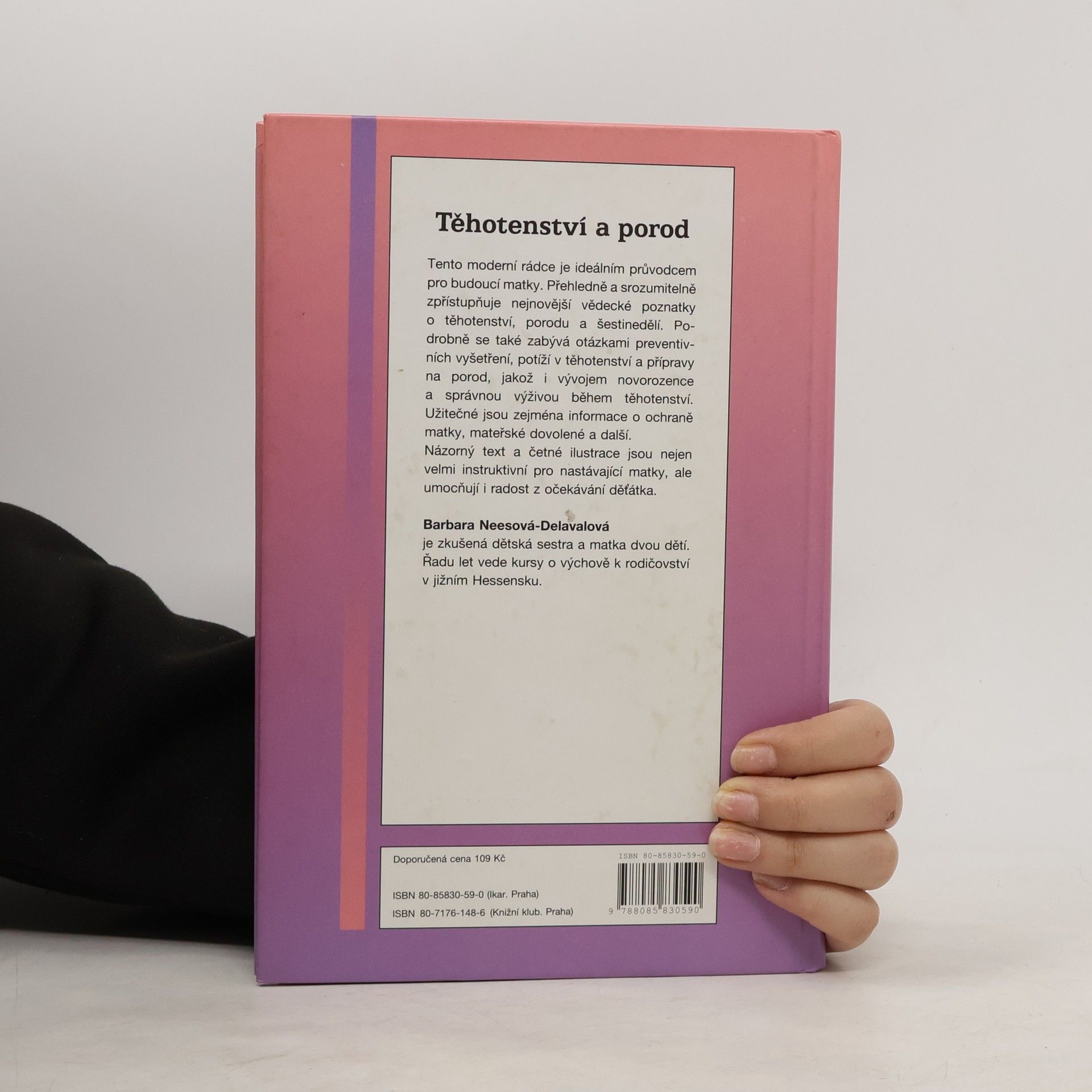 Tento moderní rádce je ideálním průvodcem pro budoucí matky. Přehledně a srozumitelně zpřístupňuje nejnovější vědecké poznatky o těhotenství, porodu a šestinedělí. Podrobně se také zabývá otázkami preventivních vyšetření, potíží v těhotenství a přípravy na porod, jakož i vývojem novorozence a správnou výživou během těhotenství. Užitečné jsou zejména informace o ochraně matky, mateřské dovolené a další. Názorný text a četné ilustrace jsou nejen velmi instruktivní pro nastávající matky, ale umocňují i radost z očekávání děťátka. Barbara Neesová - Delavalová je zkušená dětská sestra a matka dvou dětí. Řadu let vede kursy o výchově k rodičovství v jižním Hessensku.