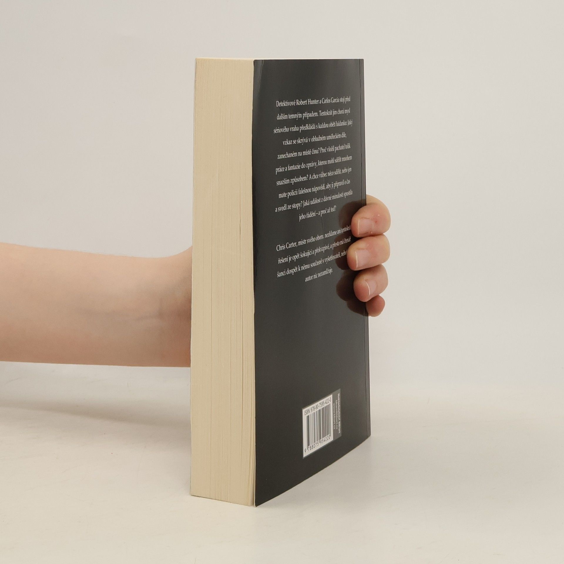 Detektivové Robert Hunter a Carlos Garcia stojí před dalším temným případem. Tentokrát jim chorá mysl sériového vraha předkládá s každou obětí hádanku: Jaký vzkaz se skrývá v obludném uměleckém díle, zanechaném na místě činu? Proč vložil pachatel tolik práce a fantazie do zprávy, kterou mohl sdělit mnohem snazším způsobem? A chce vůbec něco sdělit, nebo jen mate policii falešnou nápovědí, aby ji připravil o čas a svedl ze stopy? Jaká událost z dávné minulosti spustila jeho řádění – a proč až teď? Chris Carter, mistr svého oboru, nezklame ani tentokrát: řešení je opět šokující a překvapivé, a přesto má čtenář šanci dospět k němu současně s vyšetřovateli, neboť mu autor nic nezamlčuje.