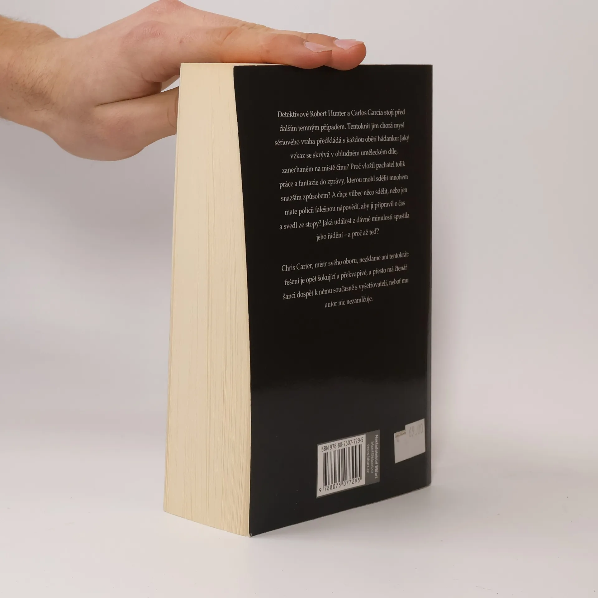 Detektivové Robert Hunter a Carlos Garcia stojí před dalším temným případem. Tentokrát jim chorá mysl sériového vraha předkládá s každou obětí hádanku: Jaký vzkaz se skrývá v obludném uměleckém díle, zanechaném na místě činu? Proč vložil pachatel tolik práce a fantazie do zprávy, kterou mohl sdělit mnohem snazším způsobem? A chce vůbec něco sdělit