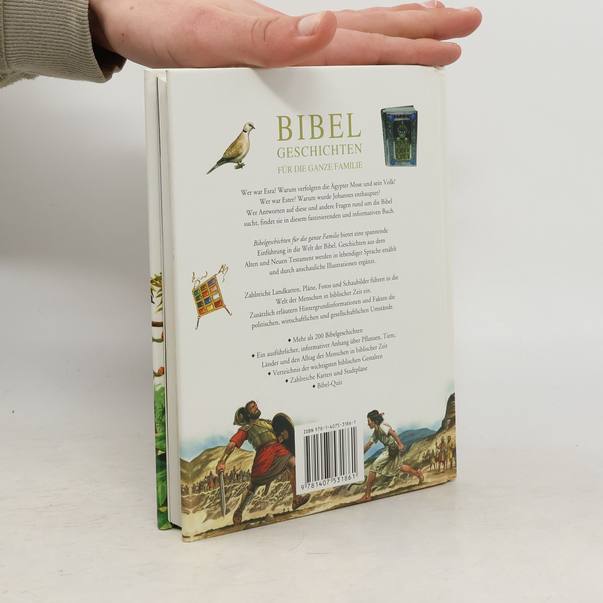 Spannende Einführung in die Bibel. Mit über 200 Geschichten, zahlreichen Illustrationen, Landkarten, Stadtplänen und Schaubildern. Ausführlicher Anhang über Pflanzen, Tiere, Länder und den Alltag der Menschen in biblischer Zeit. Verzeichnis der wichtigsten biblischen Gestalten. Mit Bibel Quiz.