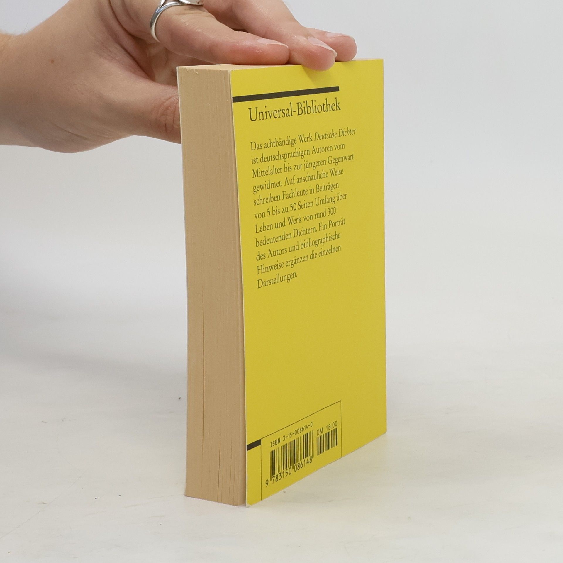 Das achtbändige Werk Deutsche Dichter ist deutschsprachigen Autoren vom Mittelalter bis zur jüngeren Gegenwart gewidmet. Auf anschauliche Weise schreiben Fachleute in Beiträgen von 5 bis zu 50 Seiten Umfang über Leben und Werk von rund 300 bedeutenden Dichtern. Ein Porträt des Autors und bibliographische Hinweise ergänzen die einzelnen Darstellungen.