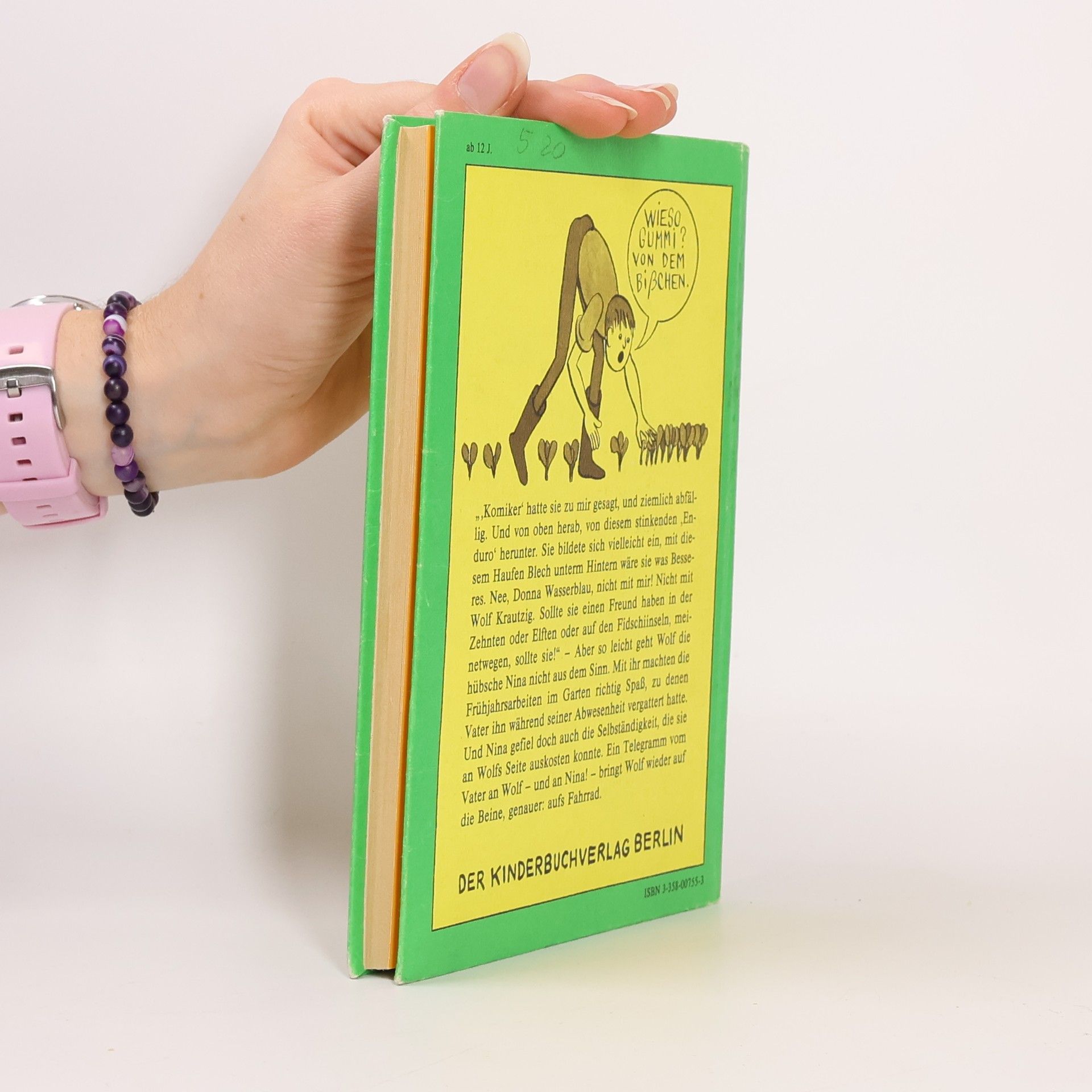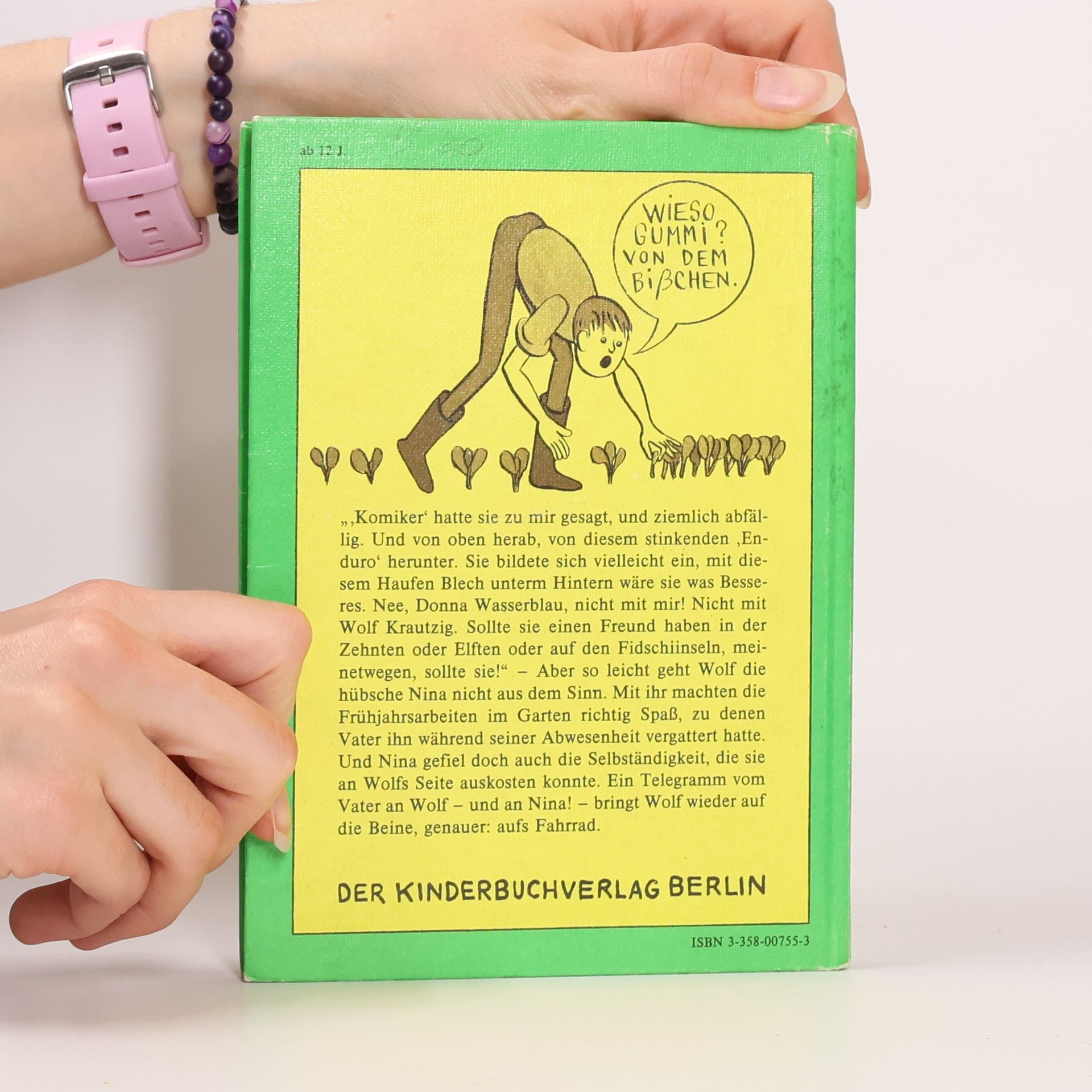 "Komiker" hatte sie zu mir gesagt, und ziemlich abfällig. Und von oben herab, von diesem stinkenden 'Enduro' herunter. Sie bildete sich vielleicht ein, mit diesem Haufen Blech unterm Hintern wäre sie was Besseres. Nee, Donna Wasserblau, nicht mit mir! Nicht mit Wolf Krautzig. Sollte sie einen Freund haben in der Zehnten oder Elften oder auf den Fidschiinseln, meinetwegen, sollte sie!" - Aber so leicht geht Wolf die hübsche Nina nicht aus dem Sinn. Mit ihr machten die Frühjahrsarbeiten im Garten richtig Spaß, zu denen Vater ihn während seiner Abwesenheit vergattert hatte. Und Nina gefiel doch auch die Selbständigkeit, die sie an Wolfs Seite auskosten konnte. Ein Telegramm vom Vater an Wolf - und an Nina! - bringt Wolf wieder auf die Beine, genauer: aufs Fahrrad!.