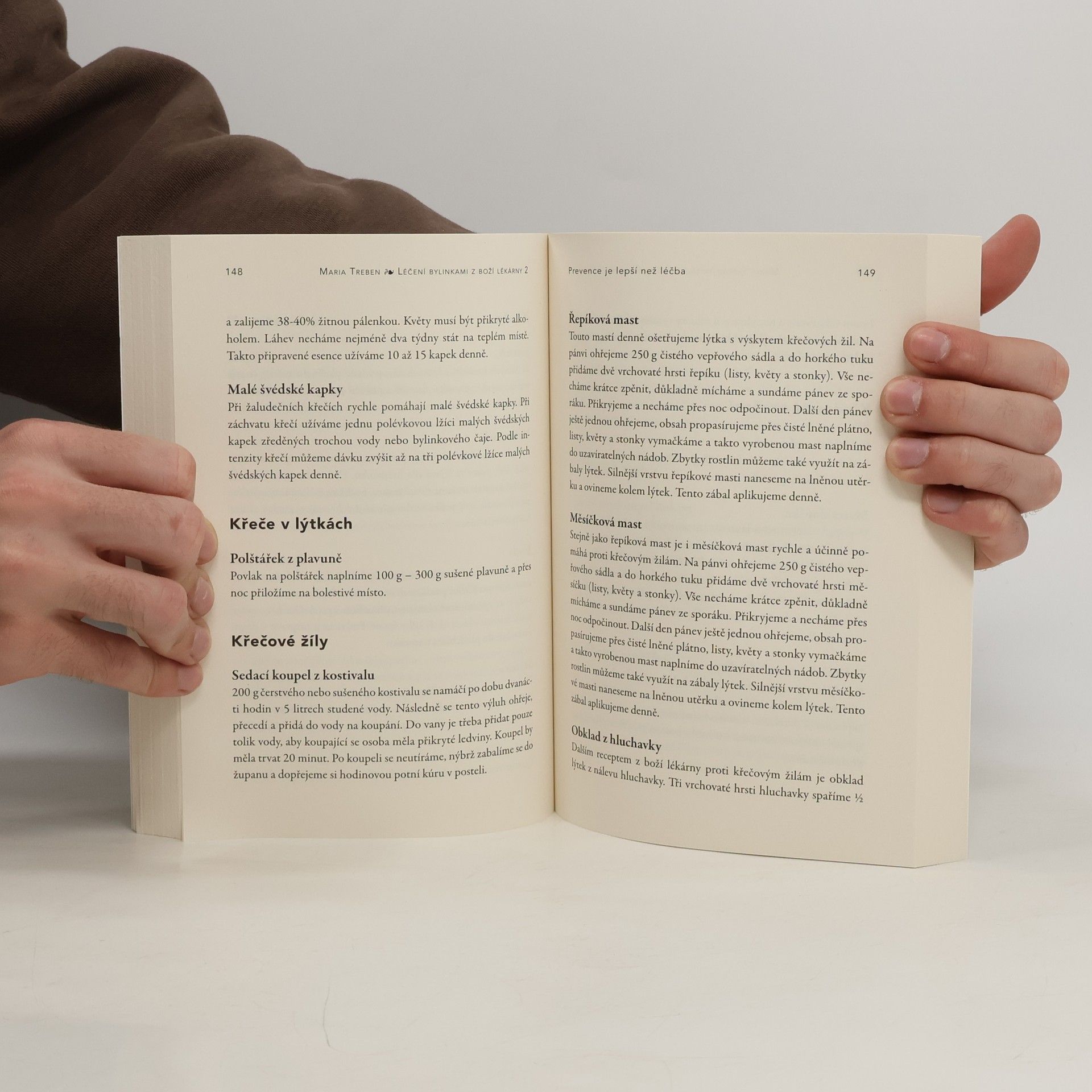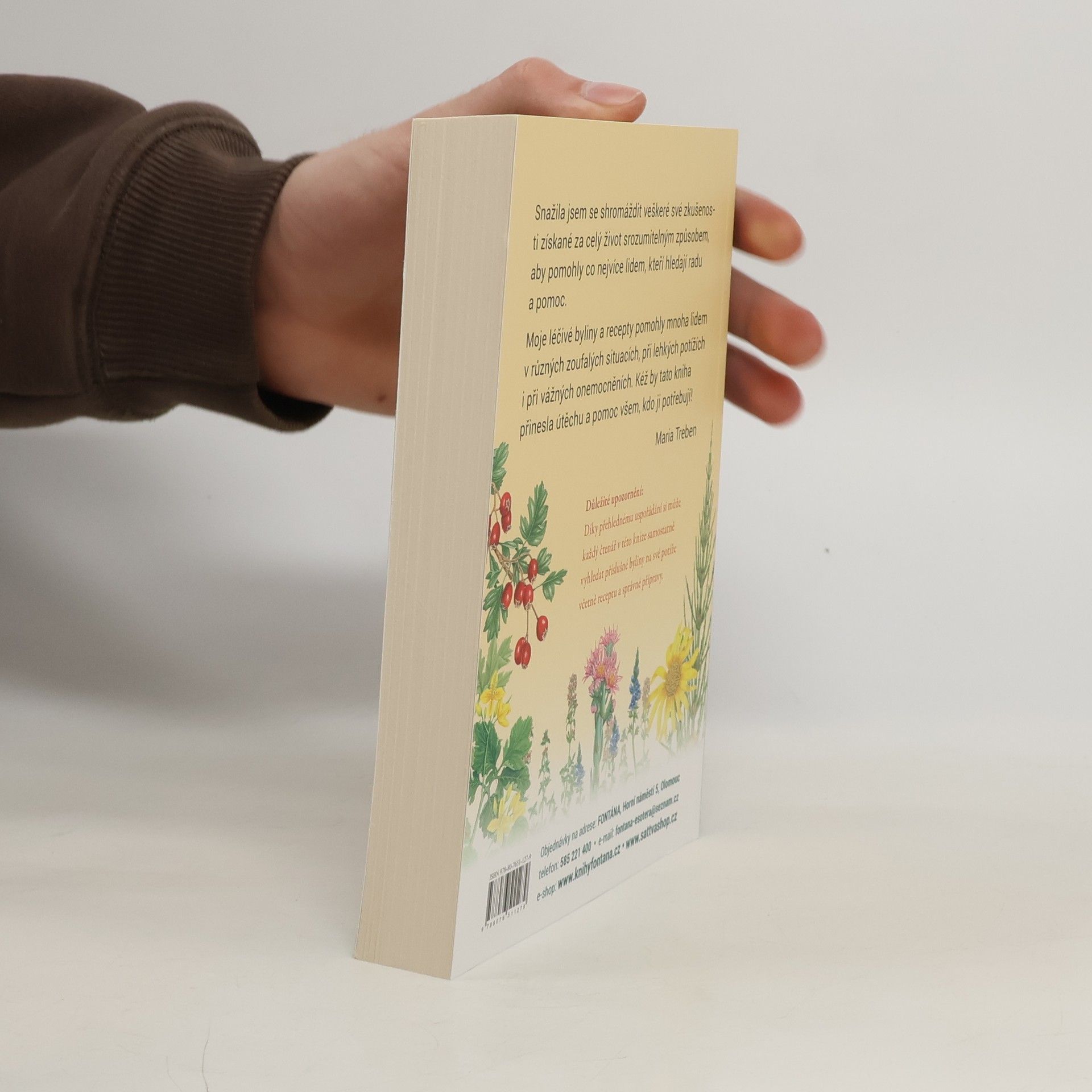 „Snažila jsem se shromáždit veškeré své zkušenosti získané za celý život srozumitelným způsobem, aby pomohly co nejvíce lidem, kteří hledají radu a pomoc.“ Moje léčivé byliny a recepty pomohly mnoha lidem v různých zoufalých situacích, při lehkých potížích i při vážných onemocněních. Kéž by tato kniha přinesla útěchu a pomoc všem, kdo ji potřebují!" Maria TrebenDíky přehlednému uspořádání si může každý čtenář v této knize samostatně vyhledat příslušné byliny na své potíže včetně receptu a správné přípravy.