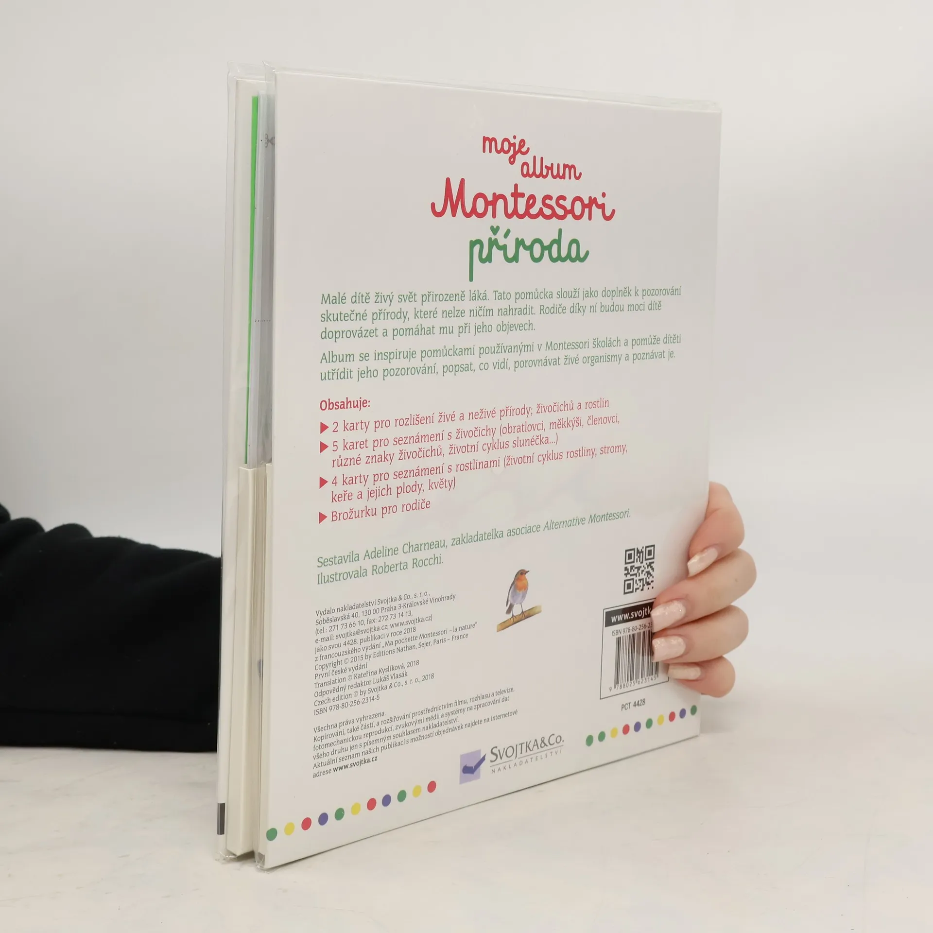 Malé dítě živý svět přirozeně láká. Tato pomůcka slouží jako doplněk k pozorování skutečné přírody, které nelze ničím nahradit. Rodiče díky ní budou moci dítě doprovázet a pomáhat mu při jeho objevech. Album se inspiruje pomůckami používanými v Montessori školách a pomůže dítěti utřídit jeho pozorování, popsat, co vidí, porovnávat živé organismy a poznávat je. Najdete v něm spoustu kartiček k objevování živočichů a rostlin: karty pro rozlišení živé a neživé přírody, živočichů a rostlin; karty pro seznámení s živočichy (obratlovci, měkkýši, členovci, různé znaky živočichů, životní cyklus slunéčka…); karty pro seznámení s rostlinami (životní cyklus rostliny, stromy, keře a jejich plody, květy). Album obsahuje též brožurku pro rodiče s návody na aktivity a informacemi o pedagogice Montessori.