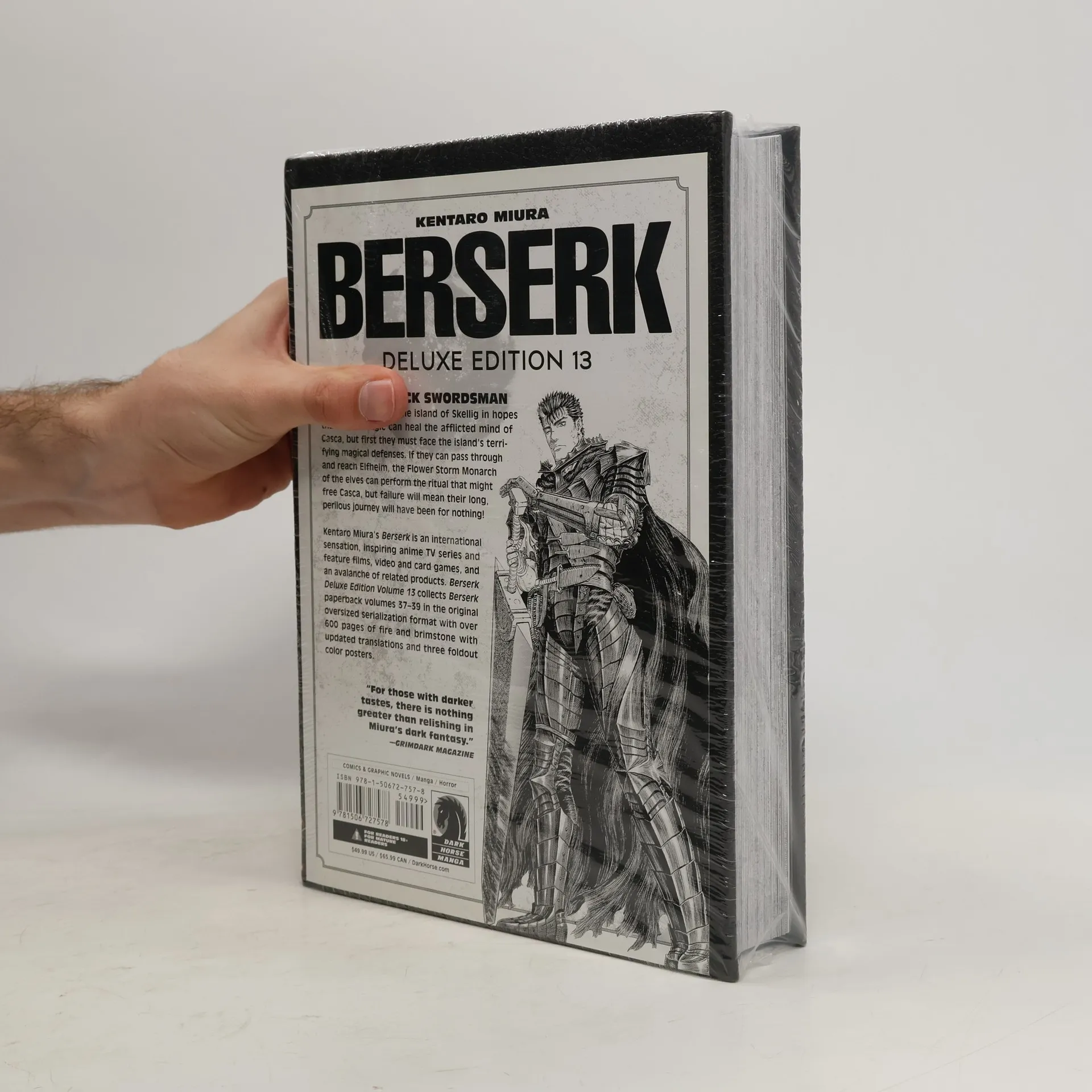The Game of Thrones of adult fantasy/horror manga roars toward the finish line, collecting Berserk volumes 37–39 in the original oversized serialization format and with updated translations and three fold-out color posters. Guts the Black Swordsman and company reach the island of Skellig in hopes than Elven magic can heal the afflicted mind of Casca, but first they must face the island’s terrifying magical defenses. If they can pass through and reach Elfhelm, the Flower Storm Monarch of the Elves can perform the ritual that might free Casca. But failure will mean their long, perilous journey will have been for nothing! Collects Berserk Volume 37, 38, and 39. FOR MATURE READERS.