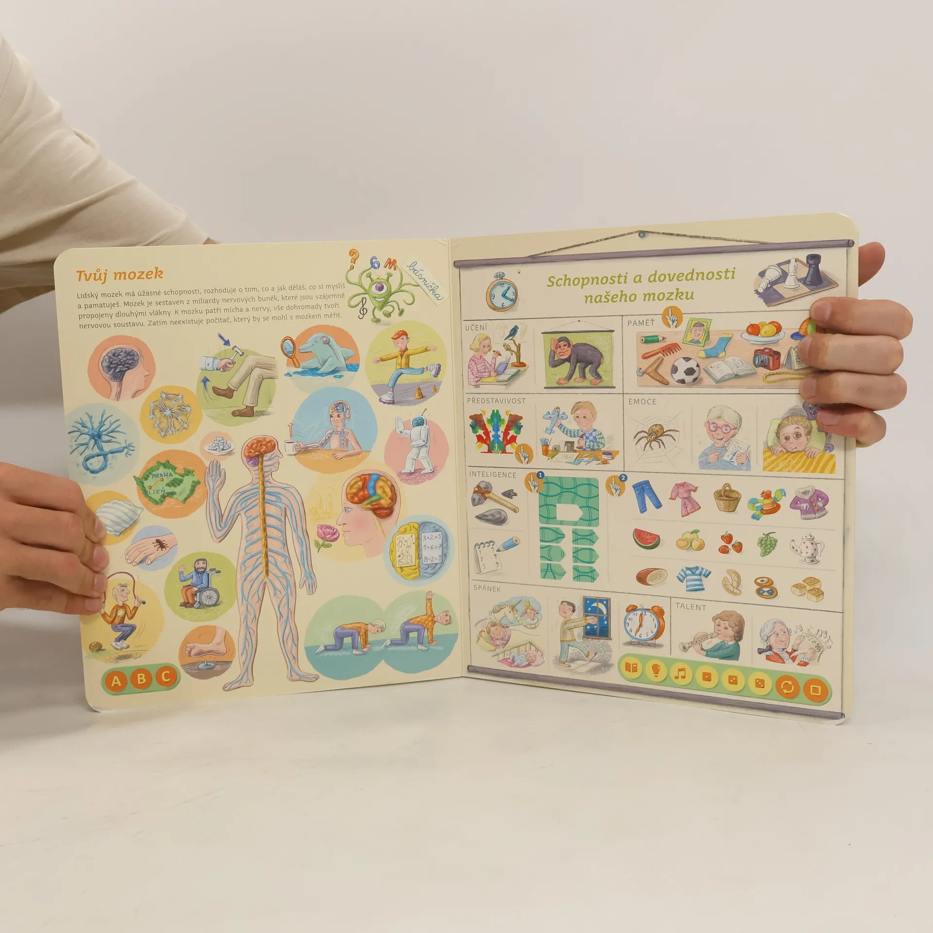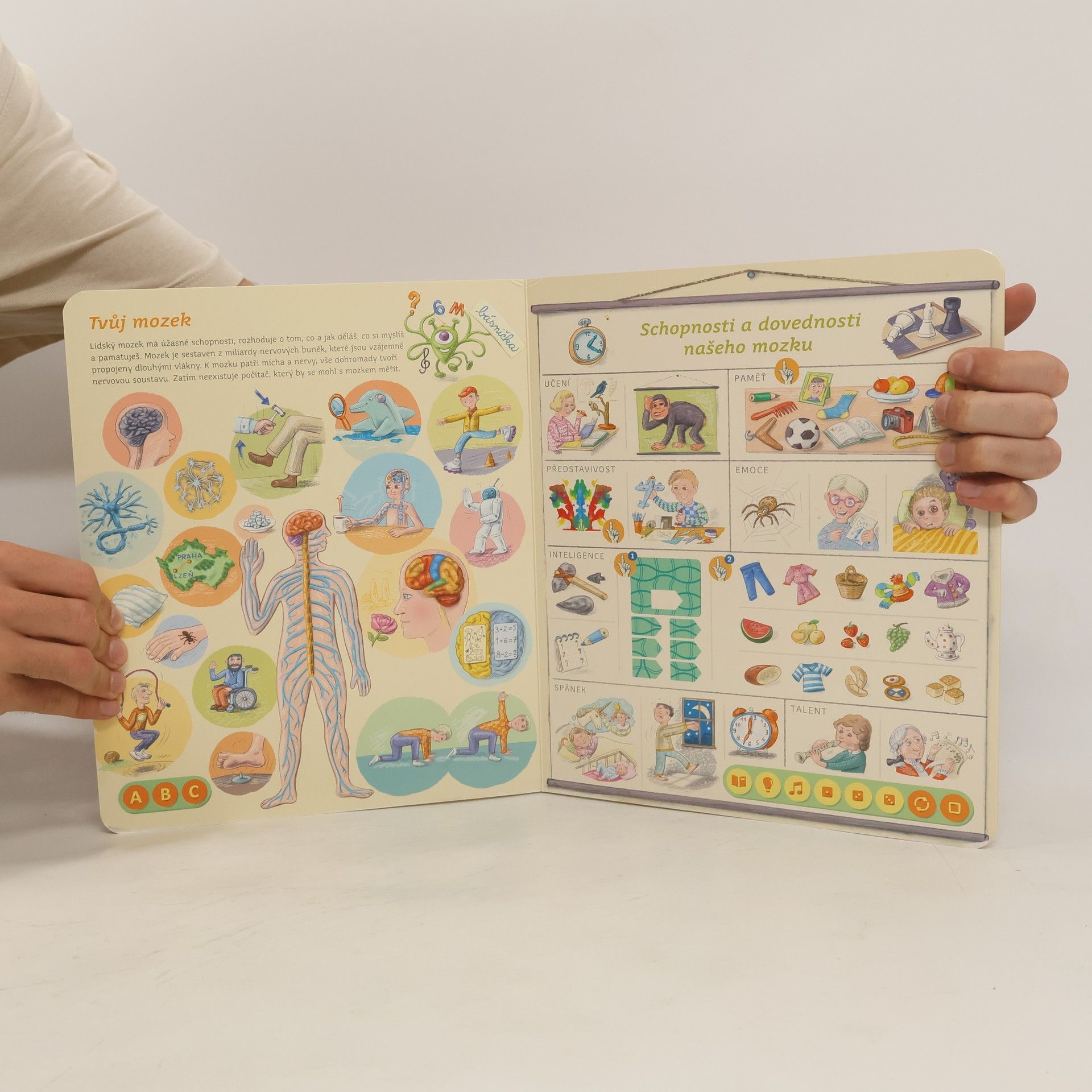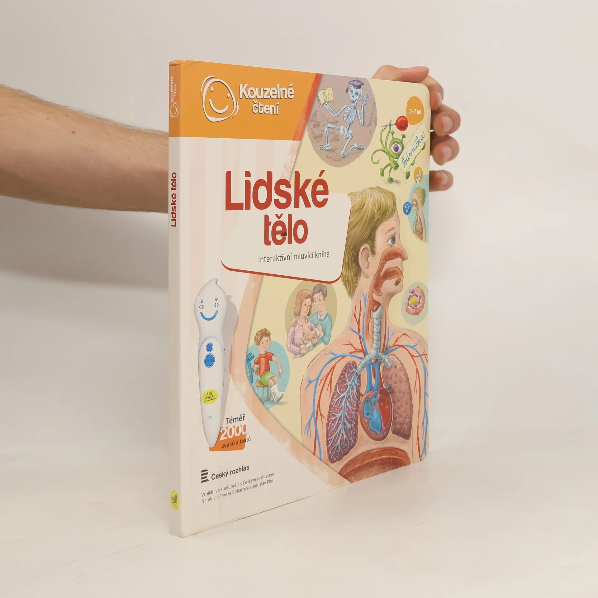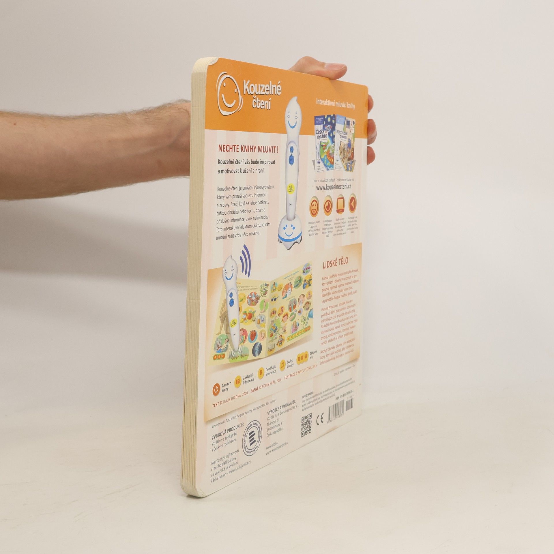 Interaktivní mluvící kniha z edice Kouzelné čtení, se kterou se děti již od 3 let dozvědí spoustu zajímavých a užitečných informací o našem těle. Knihou Lidské tělo provází malý ufon Prokouk, který přiletěl z planety Po, aby prozkoumal taje lidského těla. Všemu se diví a není divu: na planetě Po funguje všechno úplně jinak! Postava Prokouka a poutavé ilustrace podněcují děti k postupnému objevování jednotlivých částí a soustav lidského těla. Kniha je členěna do 8 kapitol a témata jsou např. Kosti a svaly, Mozek a nervy, Rozmnožování, Trávicí soustava, Srdce a plíce atd. Na každé dvoustraně najdou malí i velcí průzkumníci návod na cvik. Když si všechny cviky propojí, vznikne sestava, kterou si mohou zacvičit a krásně se přitom protáhnout. V knize Lidské tělo najdete také básničky, zábavné kvízy a speciální ikony, které děti vybízí, aby si získanou informaci zkusili doslava na vlastní kůži. Kniha obsahuje téměř 2000 zvuků a textů. Knihu ilustroval Pavel Pecina, básničky napsal Robin Král, texty Lucie Ujcová. Vzniklo ve spolupráci s Českým rozhlasem, knihu namluvili Tereza Bebarová a Jaroslav Plesl.