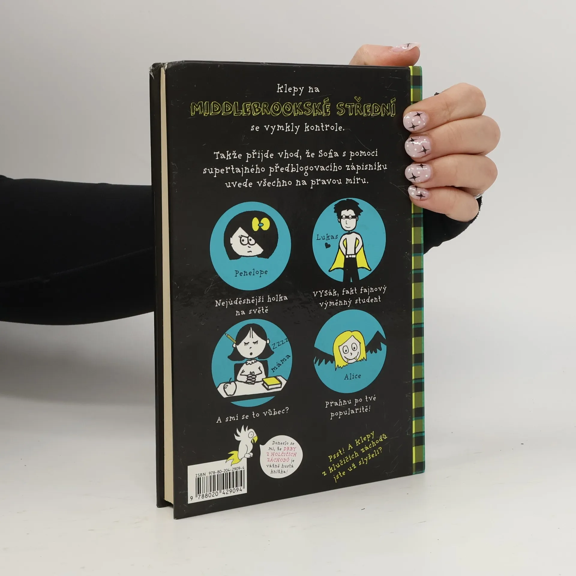 Sofia Beckerová zažívá na Middlebrookské střední pořád další pozoruhodná dobrodružství. Neustává ve svých blogerských snahách, pilně doplňuje školní blog a její předblogovací zápisník je plný legračních postřehů i osobitých ilustrací. A že je co komentovat – na školu totiž přišel výměnný student, takže se i zdroj cenných informací takticky přemístil z holčičích záchodů na ty chlapecké. Kromě toho na Sofii čeká i jedna obrovská životní změna.