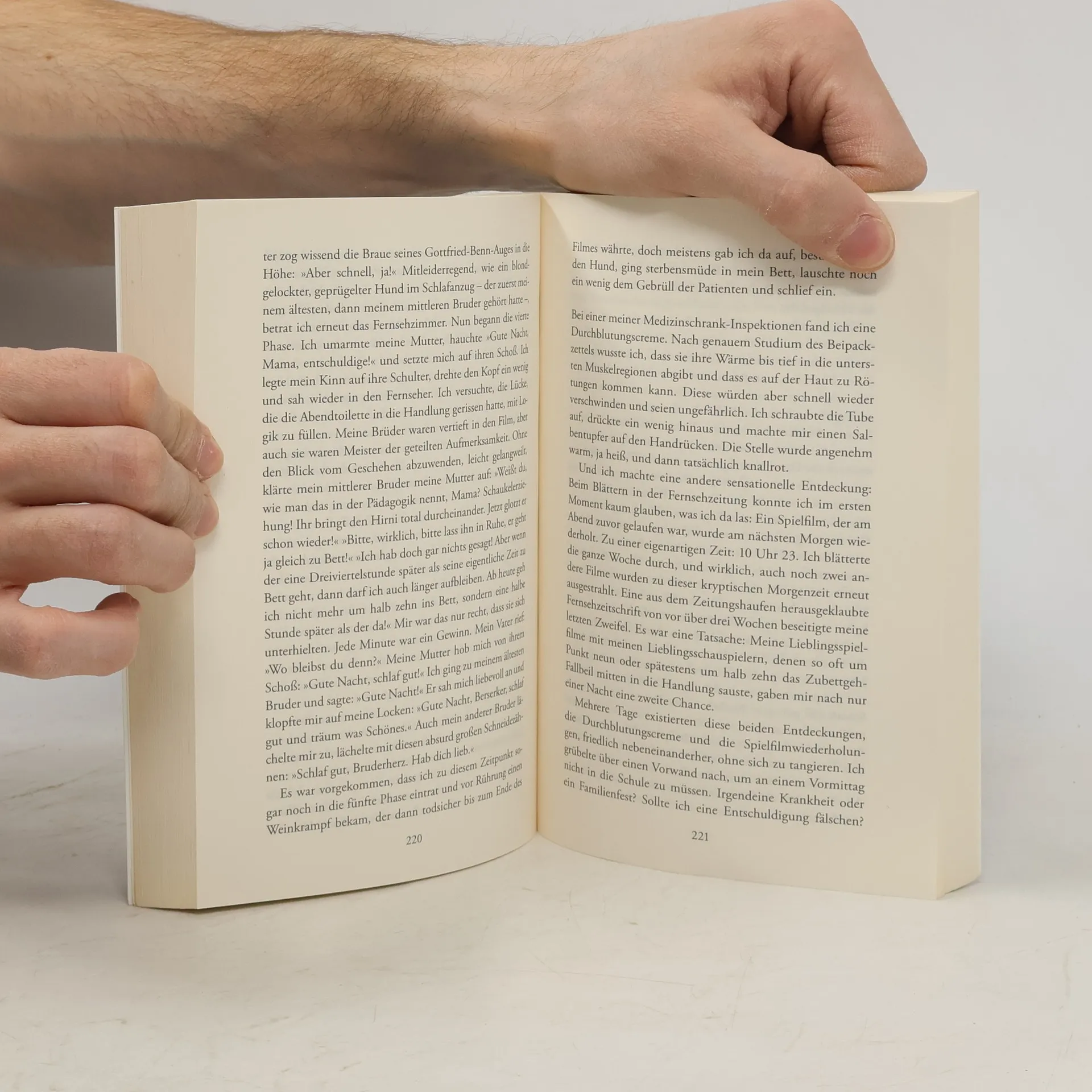 In diesem zweiten Band des Zyklus „Alle Toten fliegen hoch“ von Joachim Meyerhoff wird das Aufwachsen des jungen Helden in einer Kinder- und Jugendpsychiatrie erzählt. Als Sohn des Direktors kennt er ein Leben zwischen Hunderten von körperlich und geistig Behinderten und empfindet sogar Freude daran. Während sein Vater, der die Anstalt mit über 1.200 Patienten leitet, zu Hause in seinem Lesesessel versinkt, kämpft seine Mutter mit ihrer Rolle im Alltag. Die Brüder widmen sich ihren Hobbys und zeigen ihm wenig Zuneigung, während er selbst mit dem Lernen kämpft und von Wut geplagt wird. Glücklich ist er, wenn er auf einem riesenhaften Insassen reitet. Meyerhoff schildert humorvoll und einfühlsam das Leben dieser außergewöhnlichen Familie, die zwar eng verbunden, aber auch auseinandergerissen ist. Der Vater glänzt in der Theorie, versagt jedoch in der Praxis, was zu komischen, aber auch tragischen Situationen führt. So wird ein guter Vorsatz zum 40. Geburtstag mit einer Bänderdehnung bestraft, und beim Segeln gerät er in Seenot, nachdem er seinen Sohn über Bord geworfen hat. Der zentrale Themenkomplex des Romans ist der Tod, der Verlust und die bleibende Sehnsucht. Die Erinnerungen an diese ungewöhnliche Kindheit sind geprägt von lebendigen, komischen Geschichten, die trotz der Traurigkeit des Themas Freude bereiten.