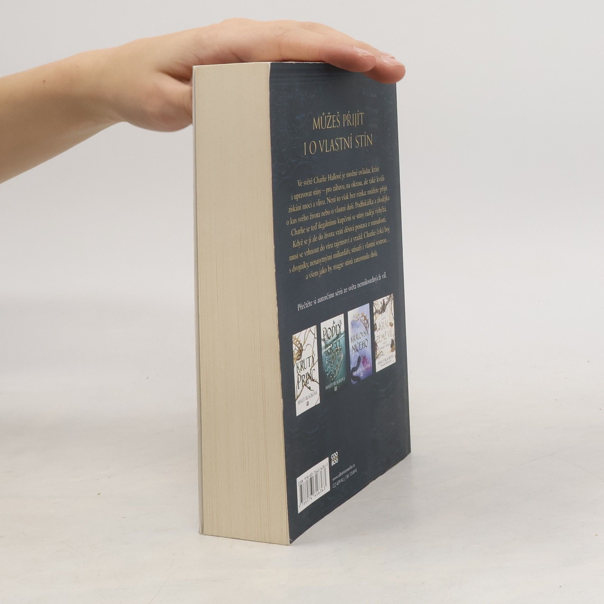 Můžeš přijít i o vlastní stín. Dekadentní fantasy od autorky série Krutý princ.Ve světě Charlie Hallové je možné manipulovat se stíny - pro zábavu, pro zkrášlení, ale taky aby člověk získal moc a vliv. Je možné změnit něčí city i vzpomínky, ale práce se stíny má svou cenu a může vám z života ukrást mnohé. Ve stínech se skrývá ta část vašeho já, kterou chcete udržet pod pokličkou, doprovází vás na každém kroku... a někdy má i svůj vlastní život. Charlie je podfukářka a zlodějka, pracuje taky jako barmanka a snaží se vyhýbat nebezpečnému prostředí ilegálního kupčení se stíny. Ale když se jí do života vrátí děsivá postava z minulosti, Charliina přítomnost se promění v chaos a její budoucnost je přinejlepším nejistá. Přinejhorším právě přestala existovat...