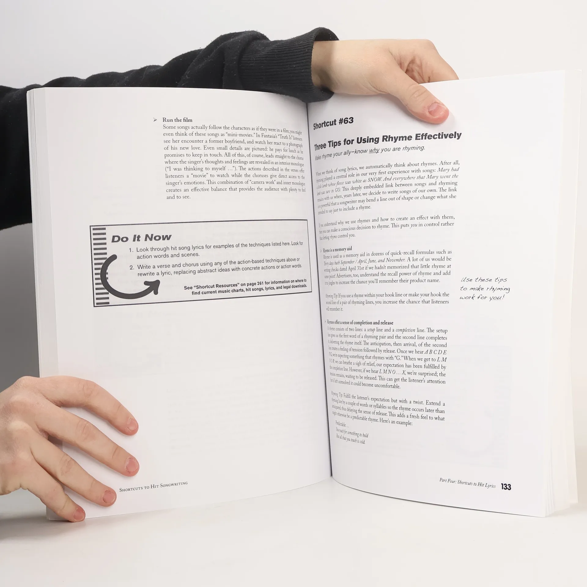Here are 126 Shortcuts that will take your songs from good to great! Discover the melody and lyric writing techniques of today's top songwriters and learn how you can use the very same secrets to give your songs the power and edge that will make listeners want to hear them over and over again. You'll learn...~ 38 proven strategies for creating powerful, unforgettable lyrics~ 30 simple ways to make your melody fresh, exciting, and memorable~ How to use hit songs as "ghost songs" to get quick resultsPlus, there are 58 more Shortcuts to help you lay the groundwork, pick the perfect structure, and choose the chords that will give your songs even more hit potential. And there are more than 100 "Do It Now" exercises to get you started right away!"For people serious about writing great songs, it's got it all!" ~ Kara DioGuardi, BMI "Songwriter of the Year," American Idol judge"Should be in every songwriter's arsenal." ~Jason Blume, author, hit songwriter with more than 50 million album sales"An excellent road map for writers at all levels. This is the songwriter's GPS!" ~Ralph Murphy, V.P. ASCAP, Nashville