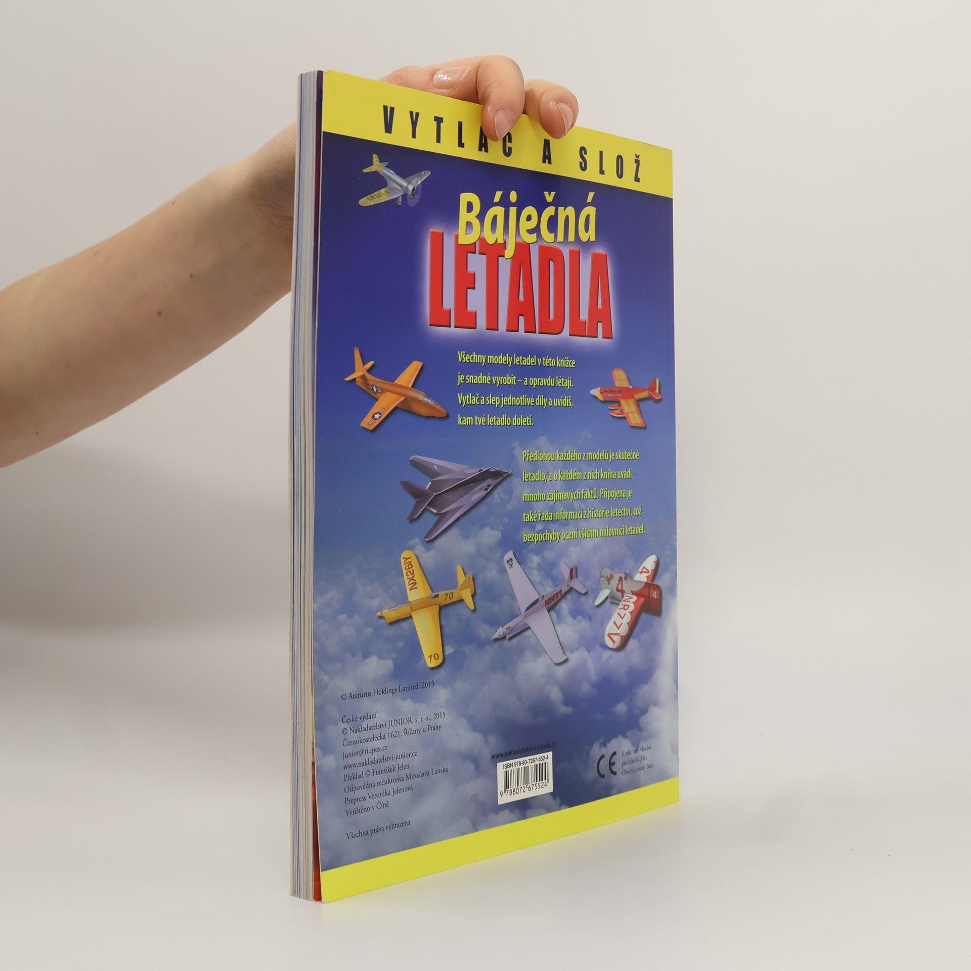 V sérii Vytlač a slož vychází kniha s modely letadel. Všech 18 modelů letadel je snadné vyrobit - a opravdu létají. Vytlač a slep jednotlivé díly a uvidíš, kam tvé letadlo doletí. Předlohou každého z modelů je skutečné letadlo, a o každém z nich kniha uvádí mnoho zajímavých faktů. Připojena je také řada informací z historie letectví, což bezpochyby ocení všichni milovníci letadel. Kniha je určena čtenářům od 8 let.