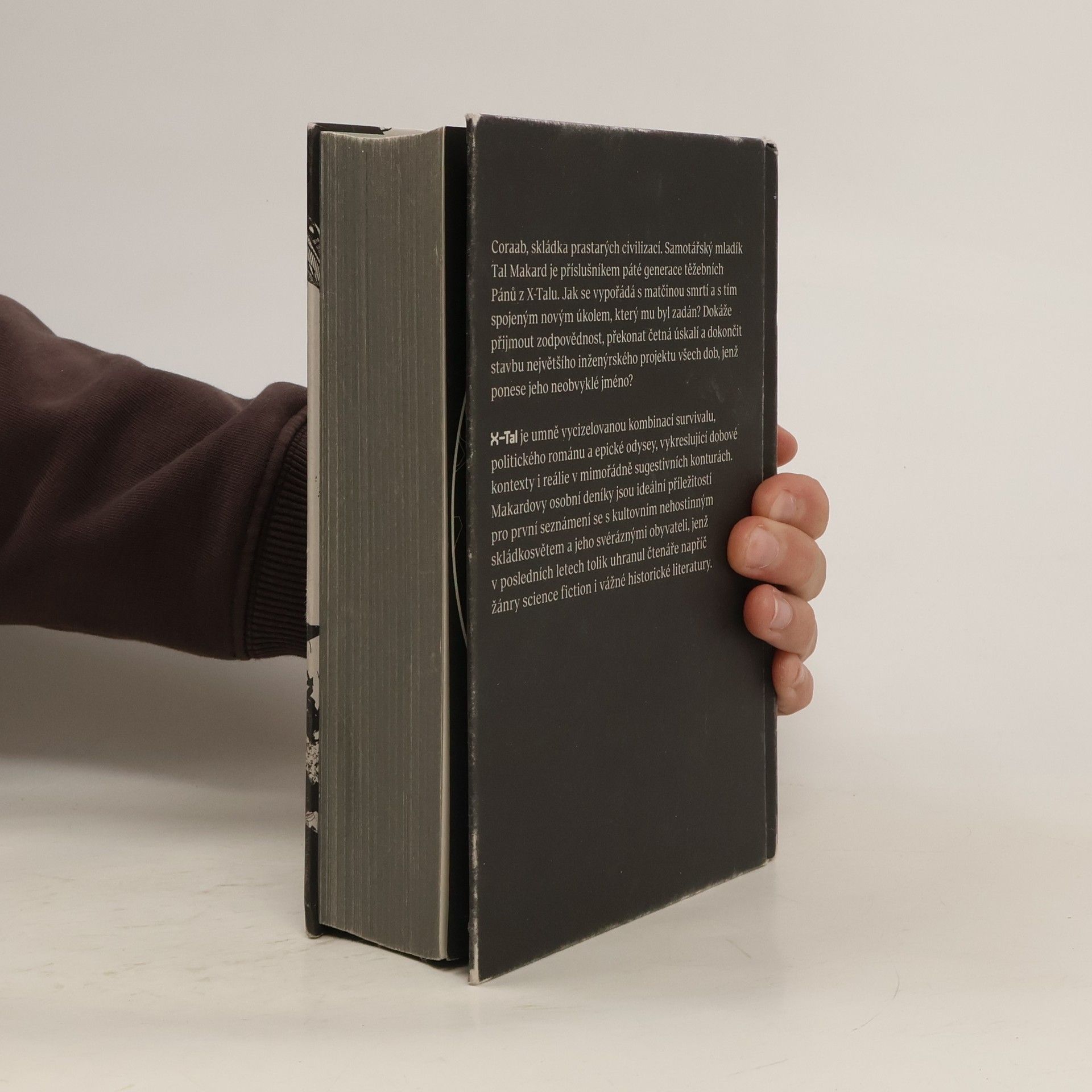 Hussarova druhá velká "historická" science fiction X-Tal nás zavede na Coraab, skládku prastarých civilizací, aby nás formou osobních deníků seznámila s osudy Tala Makarda, příslušníka páté generace těžebních Pánů. Jak se samotářský mladík vypořádá se smrtí matky a s tím spojeným novým úkolem, jenž mu byl zadán? Dokáže přijmout zodpovědnost, překonat četná úskalí a dokončit stavbu největšího inženýrského projektu všech dob, který ponese jeho jméno? X-Tal je umně vycizelovanou kombinací survivalu, politického románu a epické odysey, vykreslující dobové kontexty i místní reálie v mimořádně sugestivních konturách. Kniha potěší nejen Hussarovy věrné čtenáře, ale je rovněž ideální příležitostí pro první seznámení s kultovním nehostinným skládkosvětem a jeho svéráznými obyvateli. Nakladatelská anotace.