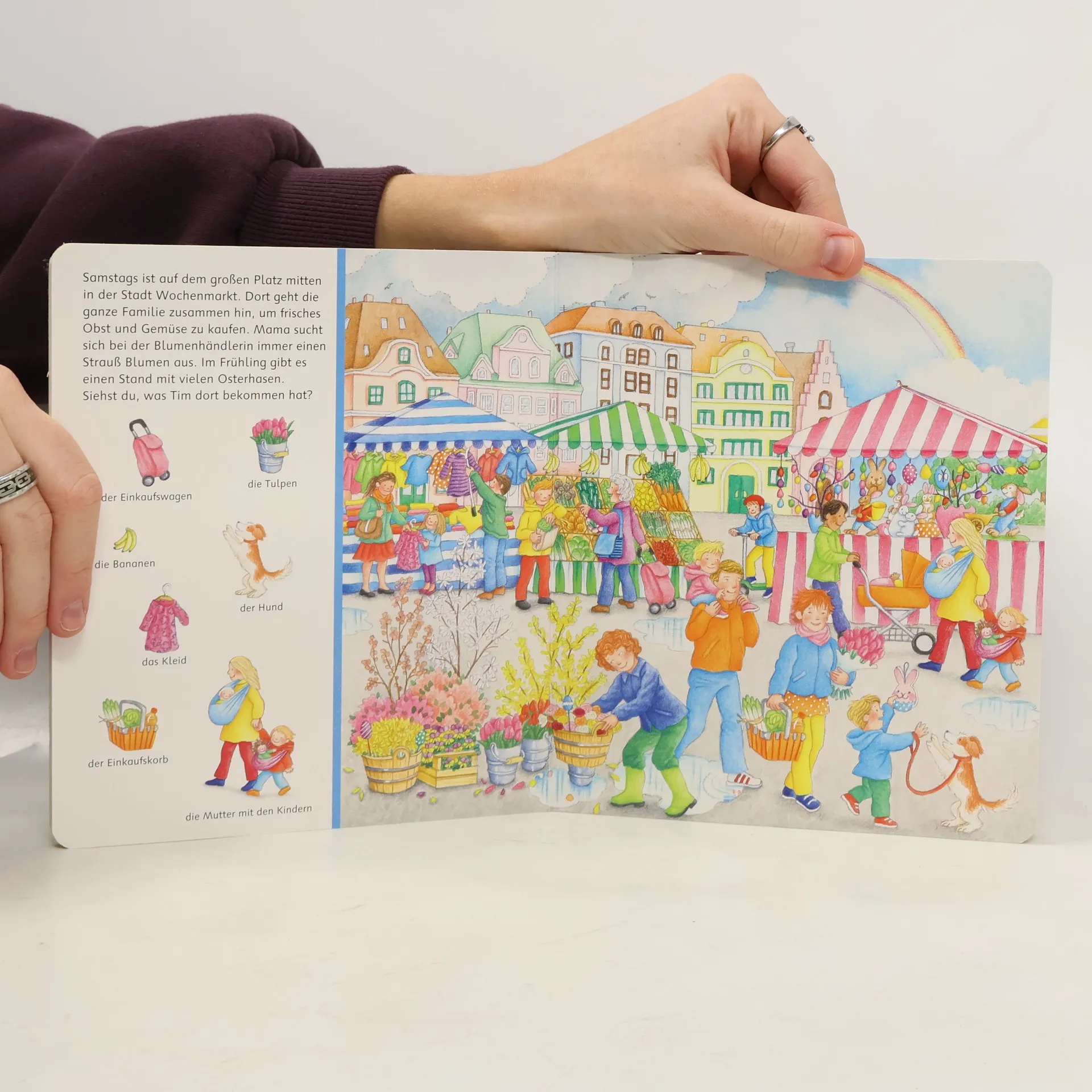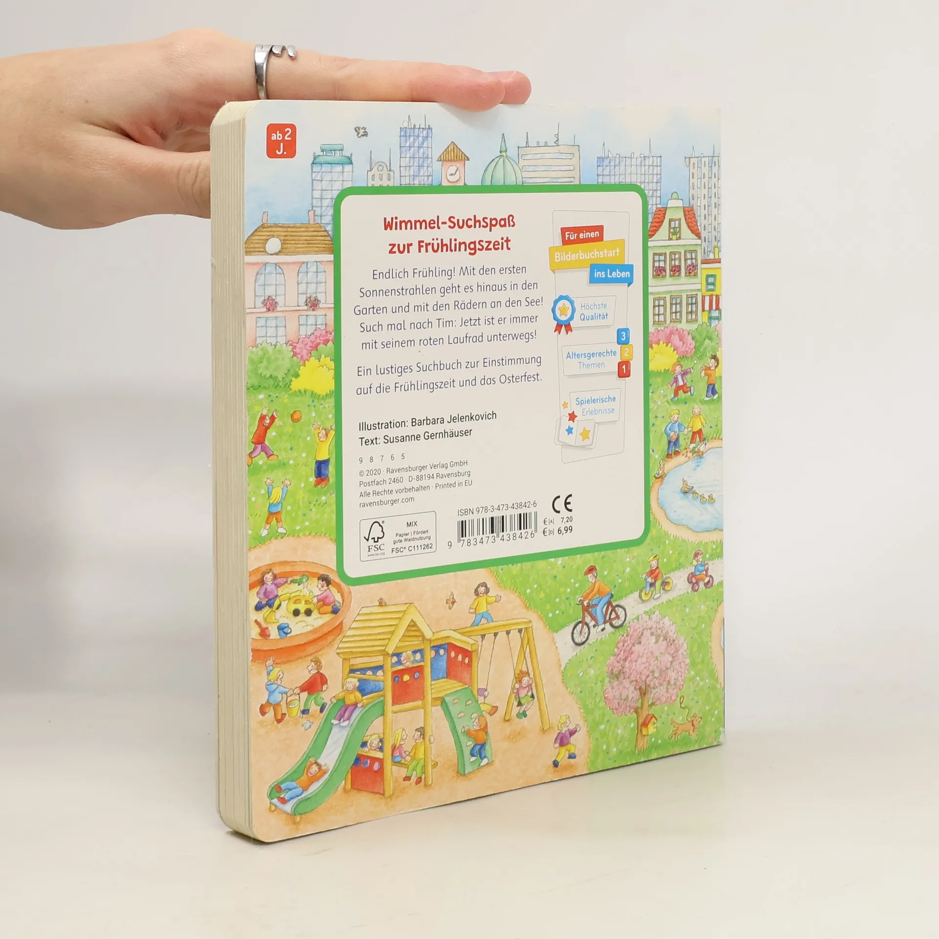 Uhu, es ist Frühling! Im Garten sprießen die ersten Schneeglöckchen und Krokusse, und auf den Spielplätzen der Stadt ist wieder viel los. Dieses Such- und Findebuch macht Lust auf den Frühling und zeigt auf 11 Wimmelseiten was es in dieser tollen Jahreszeit alles zu entdecken gibt. Die kleinen Suchbilder inspirieren dazu, die Wimmelbilder zu erkunden und viele spannende Details wahrzunehmen. Die Benennungen der Pflanzen, Tiere und Gegenstände fordert zum Erzählen auf und unterstützen damit beim Sprechen lernen