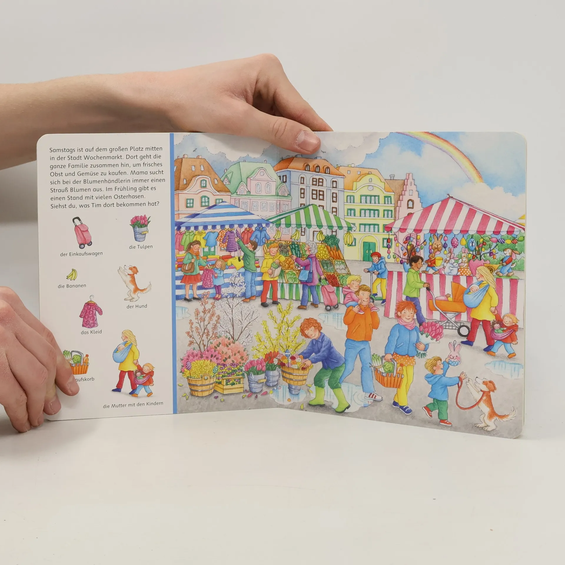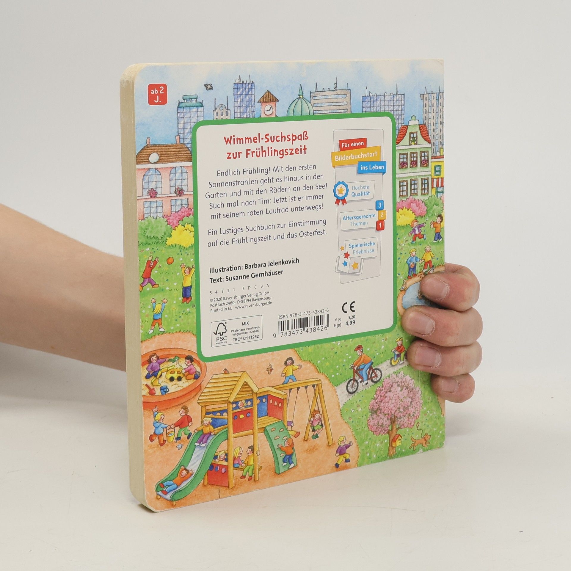 Uhu, es ist Frühling! Im Garten sprießen die ersten Schneeglöckchen und Krokusse, und auf den Spielplätzen der Stadt ist wieder viel los. Dieses Such- und Findebuch macht Lust auf den Frühling und zeigt auf 11 Wimmelseiten was es in dieser tollen Jahreszeit alles zu entdecken gibt. Die kleinen Suchbilder inspirieren dazu, die Wimmelbilder zu erkunden und viele spannende Details wahrzunehmen. Die Benennungen der Pflanzen, Tiere und Gegenstände fordert zum Erzählen auf und unterstützen damit beim Sprechen lernen