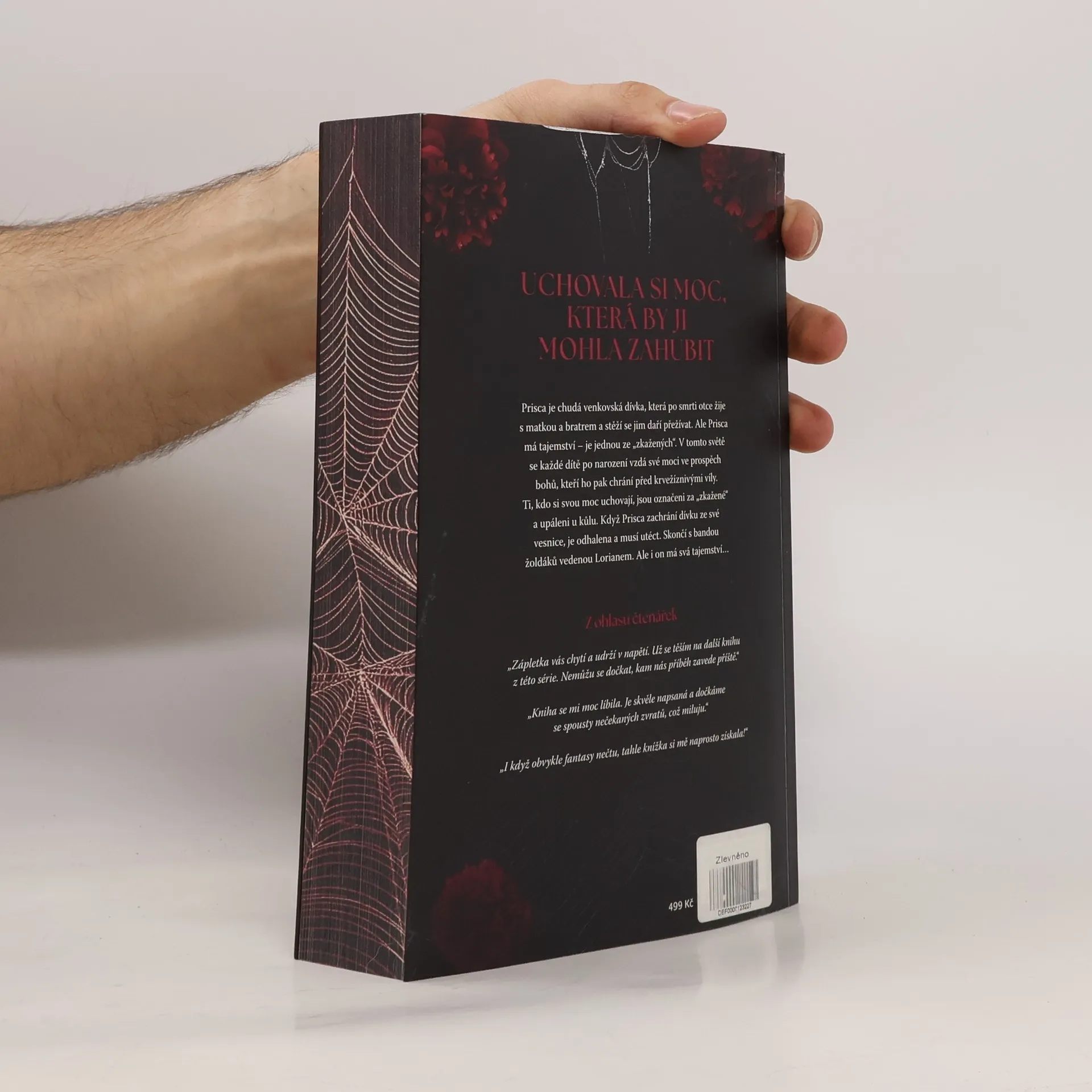 Po celá léta, když Prisca usínala, se jí zdálo o muži s podmanivýma zelenýma očima a krutým úsměvem. A skutečně se s ním setká, ovšem za jiných okolností, než by si přála. Nedlouho poté, co se lidé narodí, jim bohové seberou i tu trochu moci, s níž přišli na svět. Na oplátku je pak bohové chrání. Když se člověku podaří uchovat si svoji moc, je označený za zkaženého a je upálen. A právě to se přihodí Prisce. Její zakázaná moc je odhalena, a proto musí uprchnout ze své malé vesnice a pohodlného života. Aby přežila, musí uzavřít dohodu se žoldákem – Prisca pomůže jemu a jeho tajemným přátelům proniknout do města a oni ji naučí ovládat její vlastní tajemství a temnou moc, kterou vždy skrývala. Právě tato moc může být klíčem k Prisčině přežití. Jenže Prisca není jediná, kdo má tajemství. Žoldák skrývá svá vlastní. Tajemství, která ohrožují bezpečí všech, které Prisca miluje. Tajemství, která mohou rozvrátit nejen království, ale i celý svět.