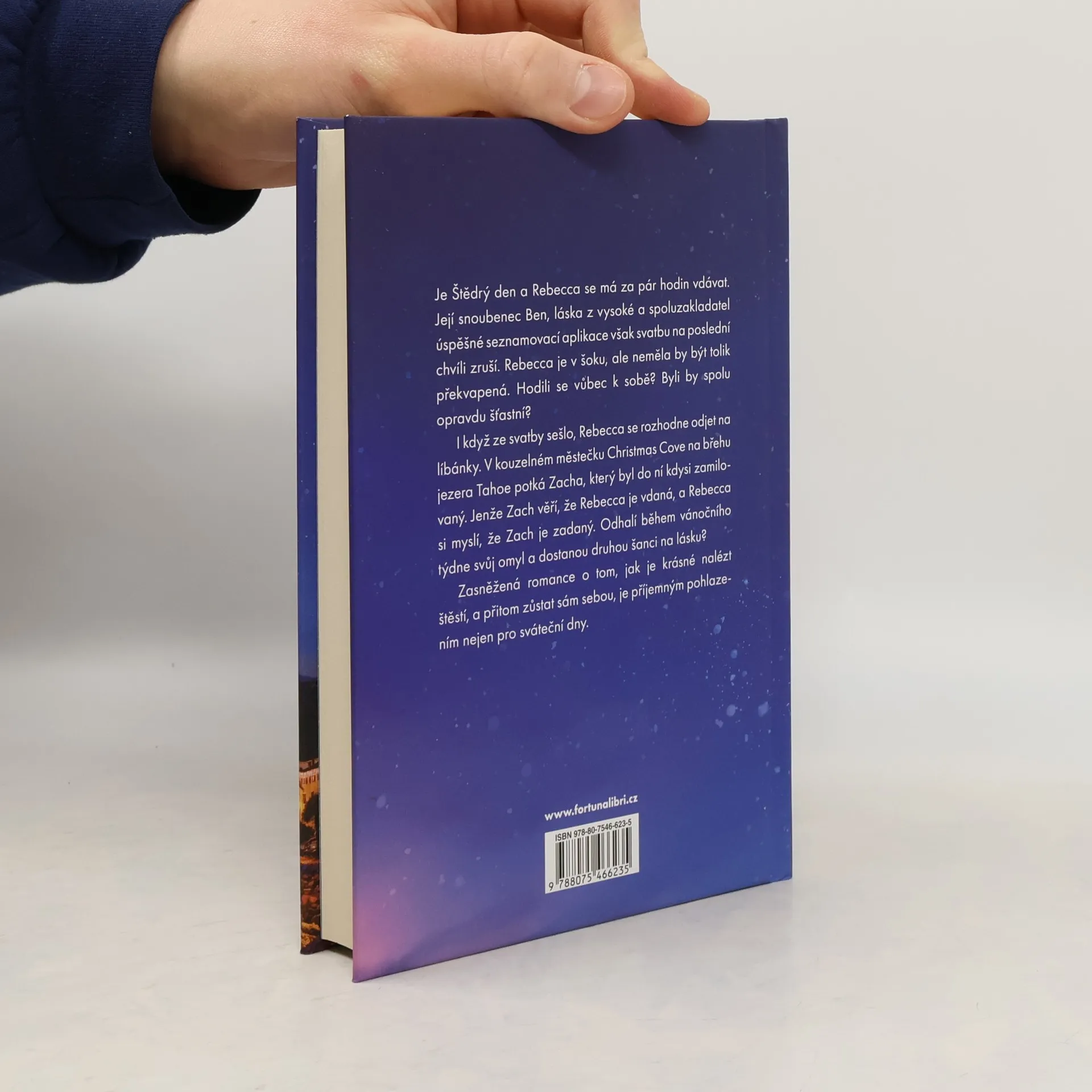 Příběh nevydařené svatby a starého přátelství. Poté, co Rebeccu o svatebním dnu opustí její nyní již bývalý přítel, odjíždí hlavní hrdinka sama na svou svatební cestu. Zde se ale setká se Zachem, mladým mužem, kterého kdysi milovala. Je Štědrý den a Rebecca se má za pár hodin vdávat. Její snoubenec Ben, láska z vysoké a spoluzakladatel úspěšné seznamovací aplikace však svatbu na poslední chvíli zruší. Rebecca je v šoku, ale neměla by být tolik překvapená. Hodili se vůbec k sobě? Byli by spolu opravdu šťastní? I když ze svatby sešlo, Rebecca se rozhodne odjet na líbánky. V kouzelném městečku Christmas Cove na břehu jezera Tahoe potká Zacha, který byl do ní kdysi zamilovaný. Jenže Zach věří, že Rebecca je vdaná, a Rebecca si myslí, že Zach je zadaný. Odhalí během vánočního týdne svůj omyl a dostanou druhou šanci na lásku? Nakladatelská anotace. Kráceno.