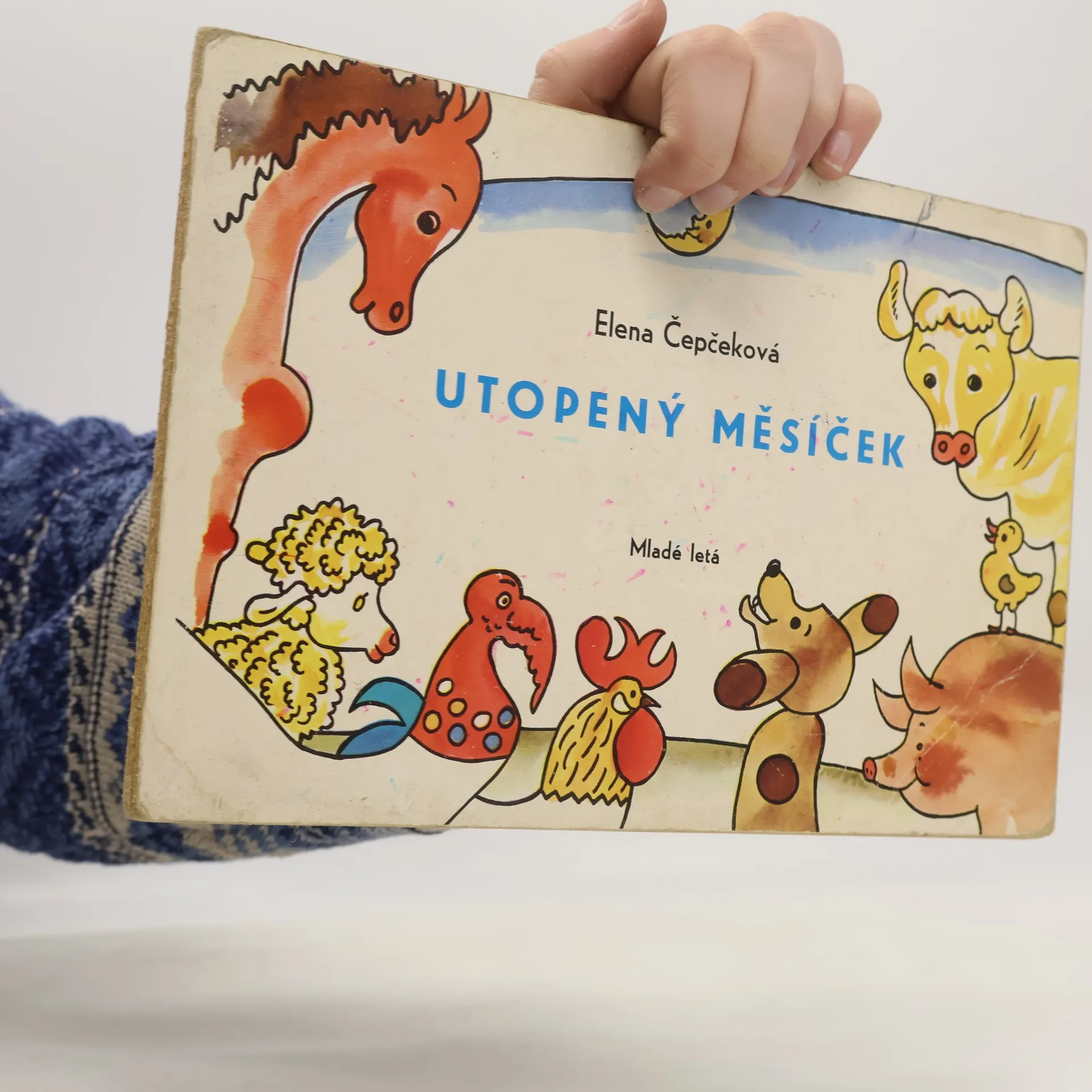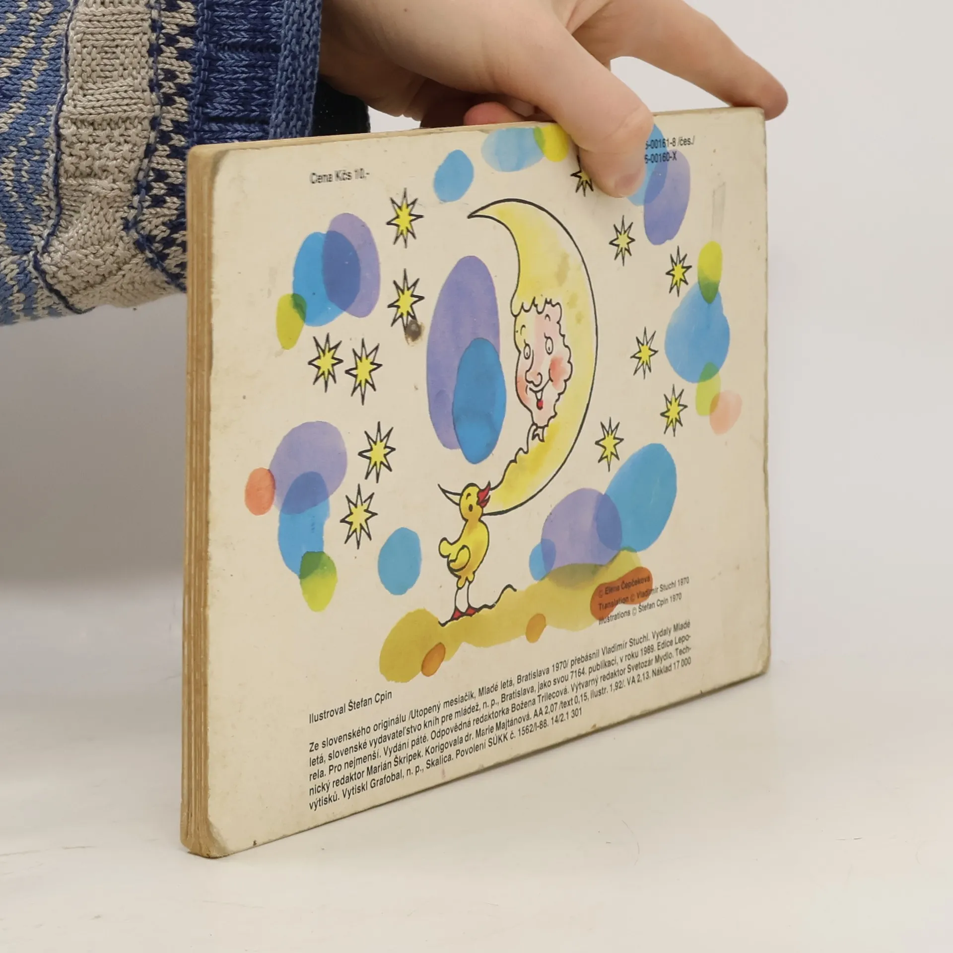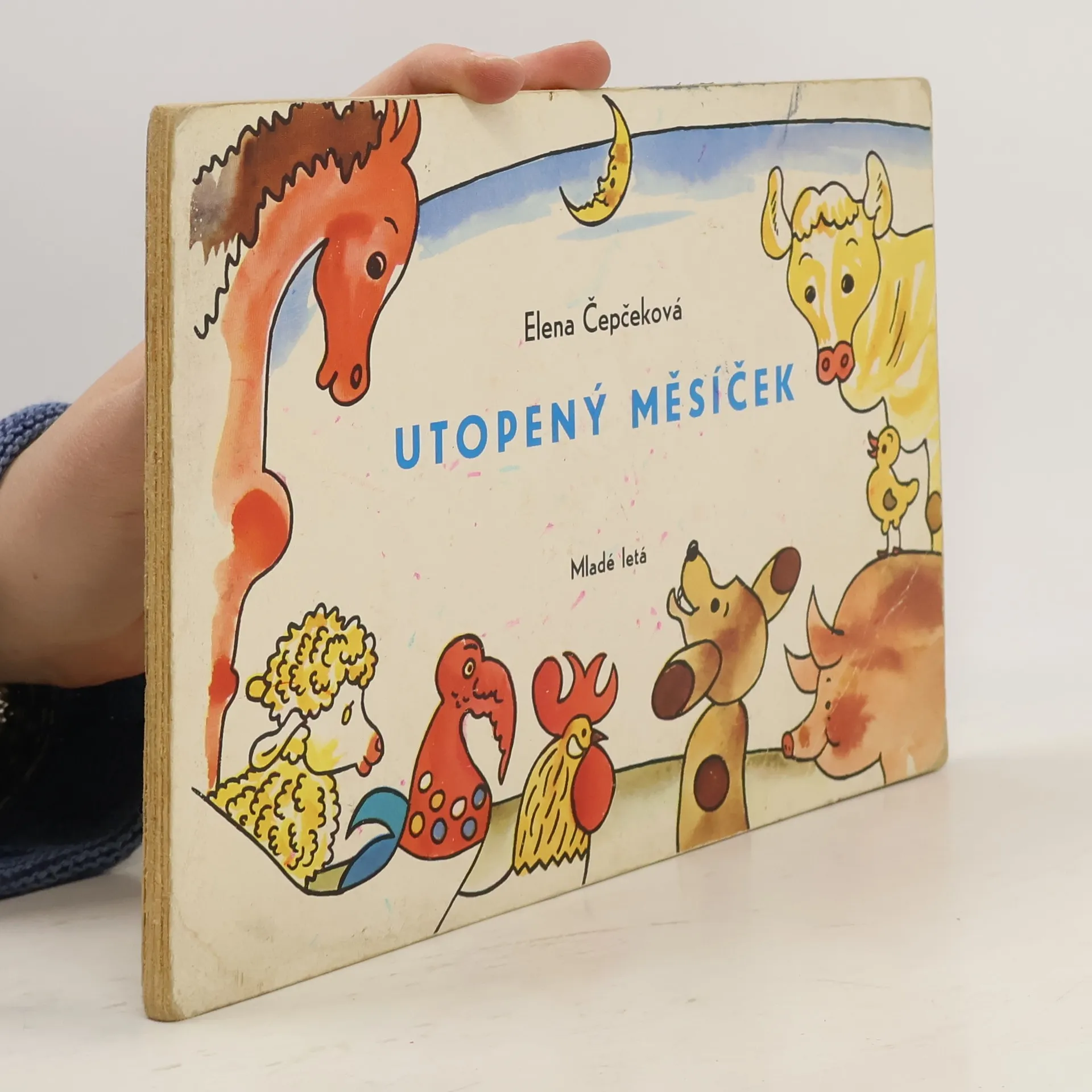 Leporelo pro nejmenší děti s názvem Utopený měsíček od Eleny Čepčekové s obrázky Štefana Cpina.