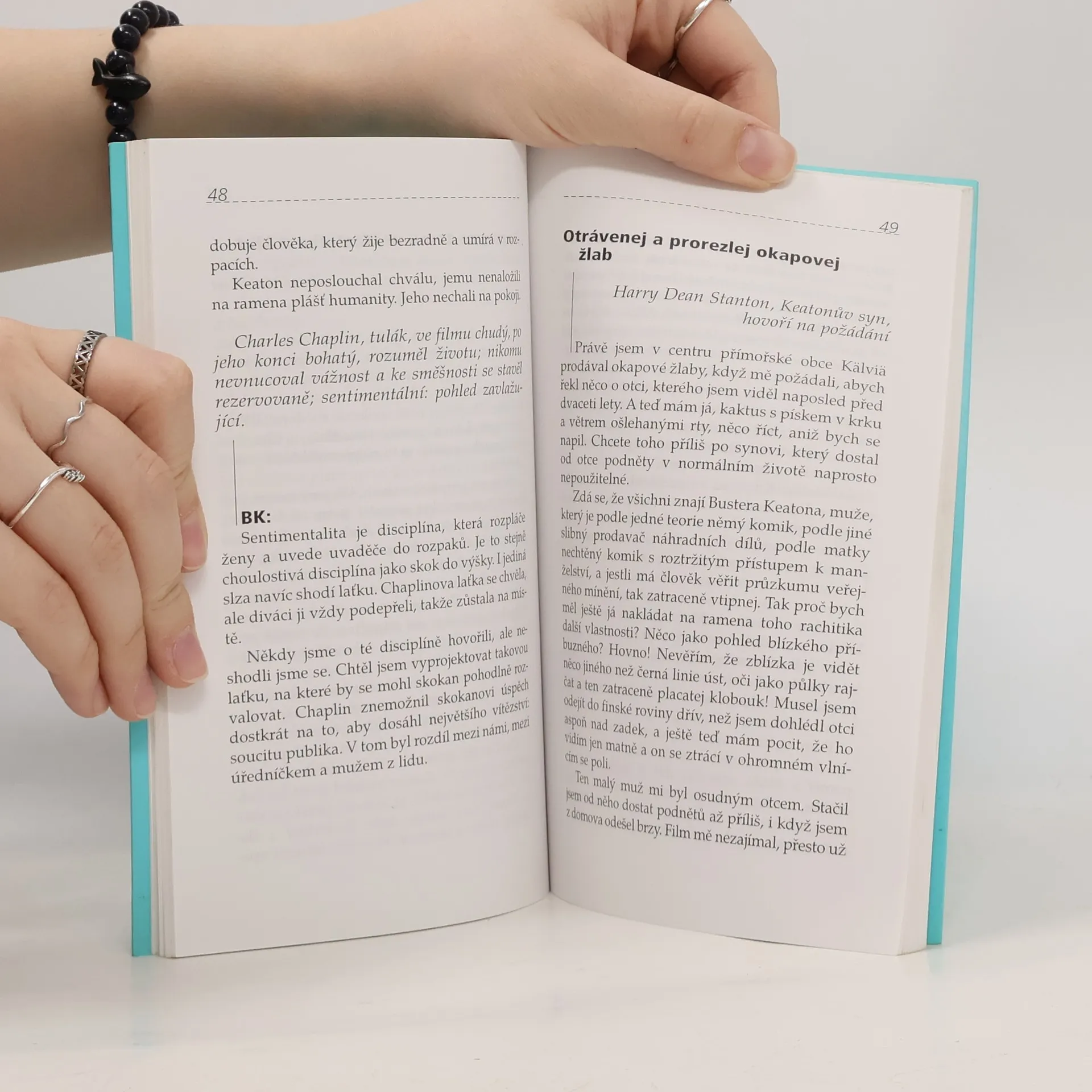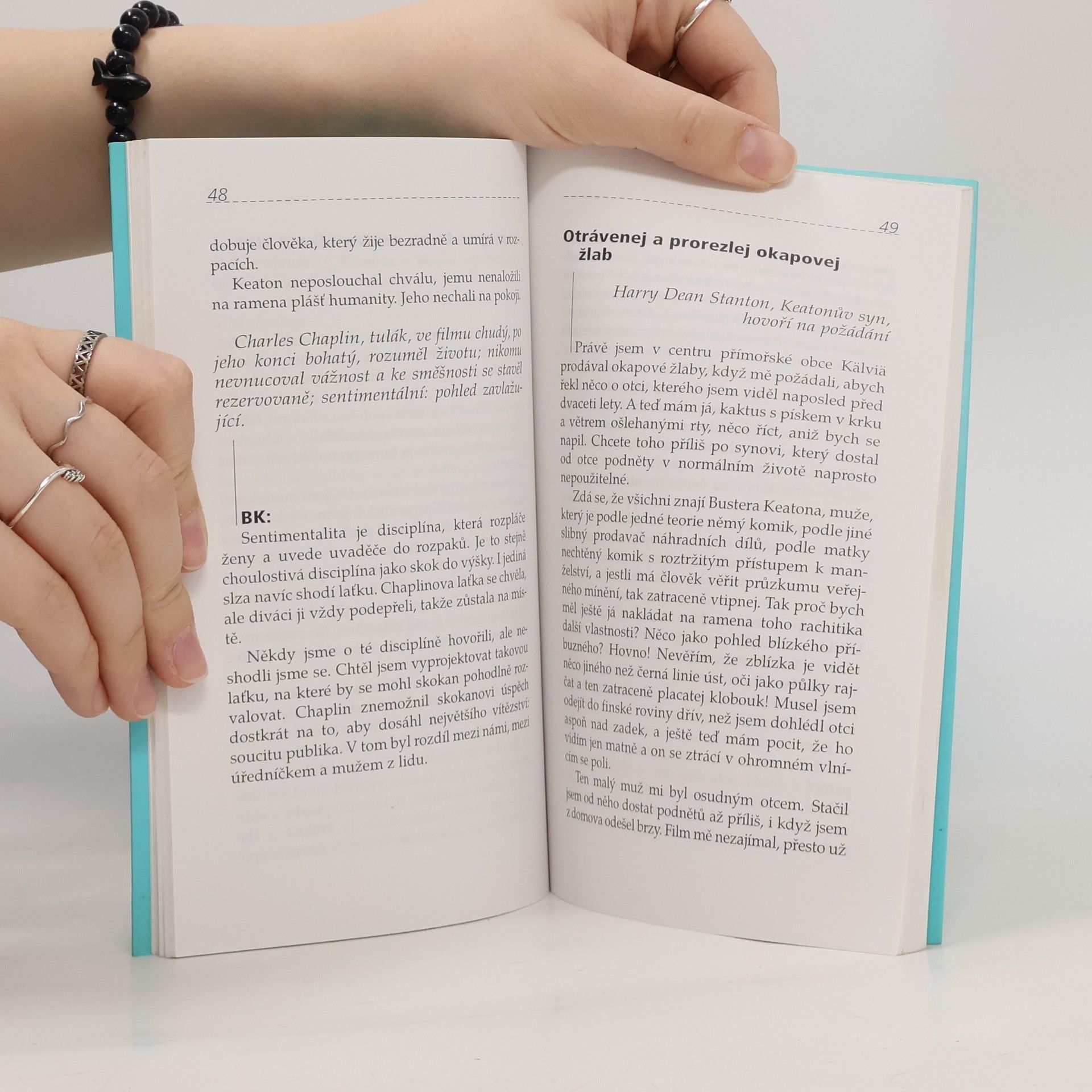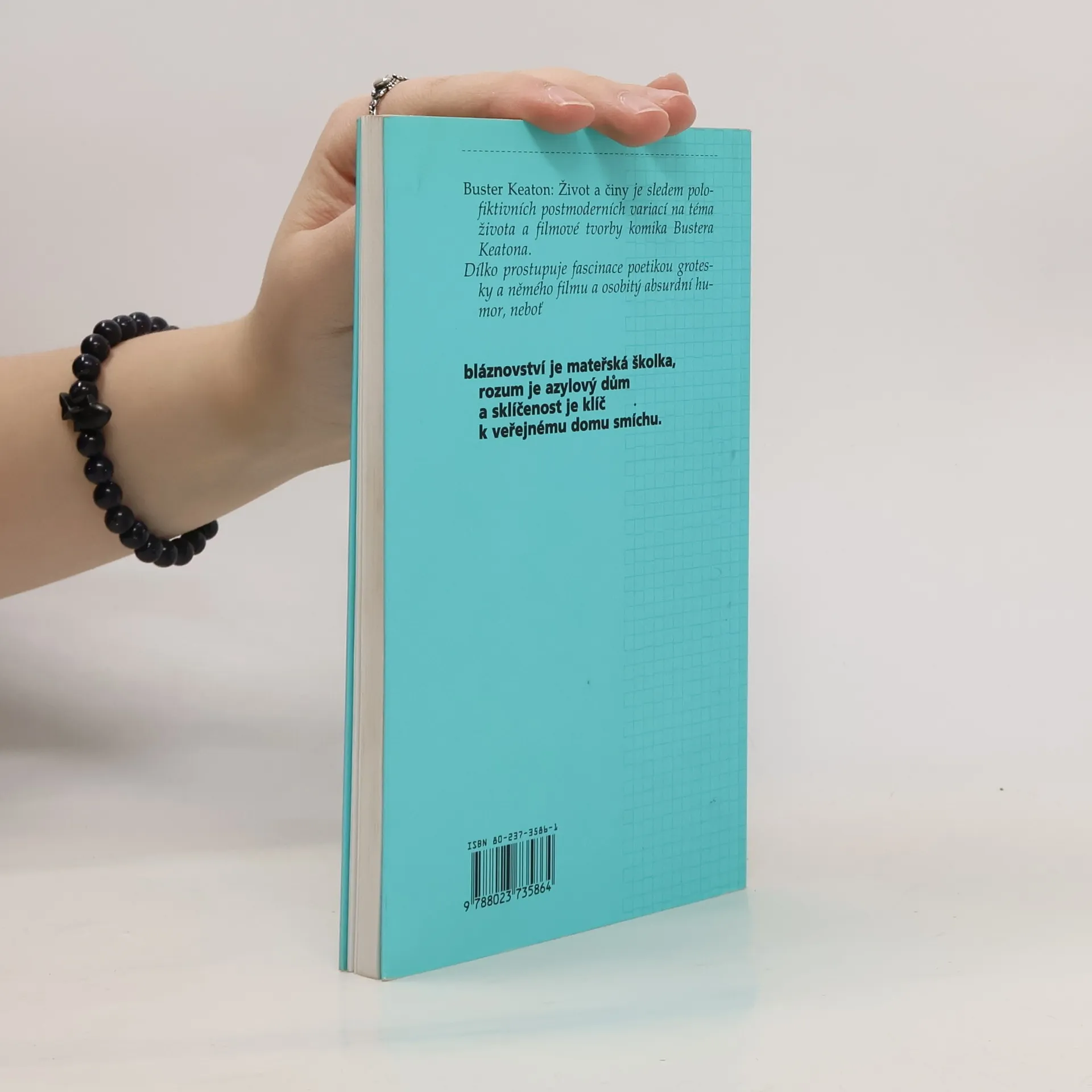 Kniha je sledem polofiktivních postmoderních variací na téma života a filmové tvorby komika Bustera Keatona. Dílo prostupuje fascinace poetikou grotesky a němého filmu a osobitý aburdní humor, neboť bláznovství je mateřská školka, rozum je azylový dům a sklíčenost je klíč k veřejnému domu smíchu.