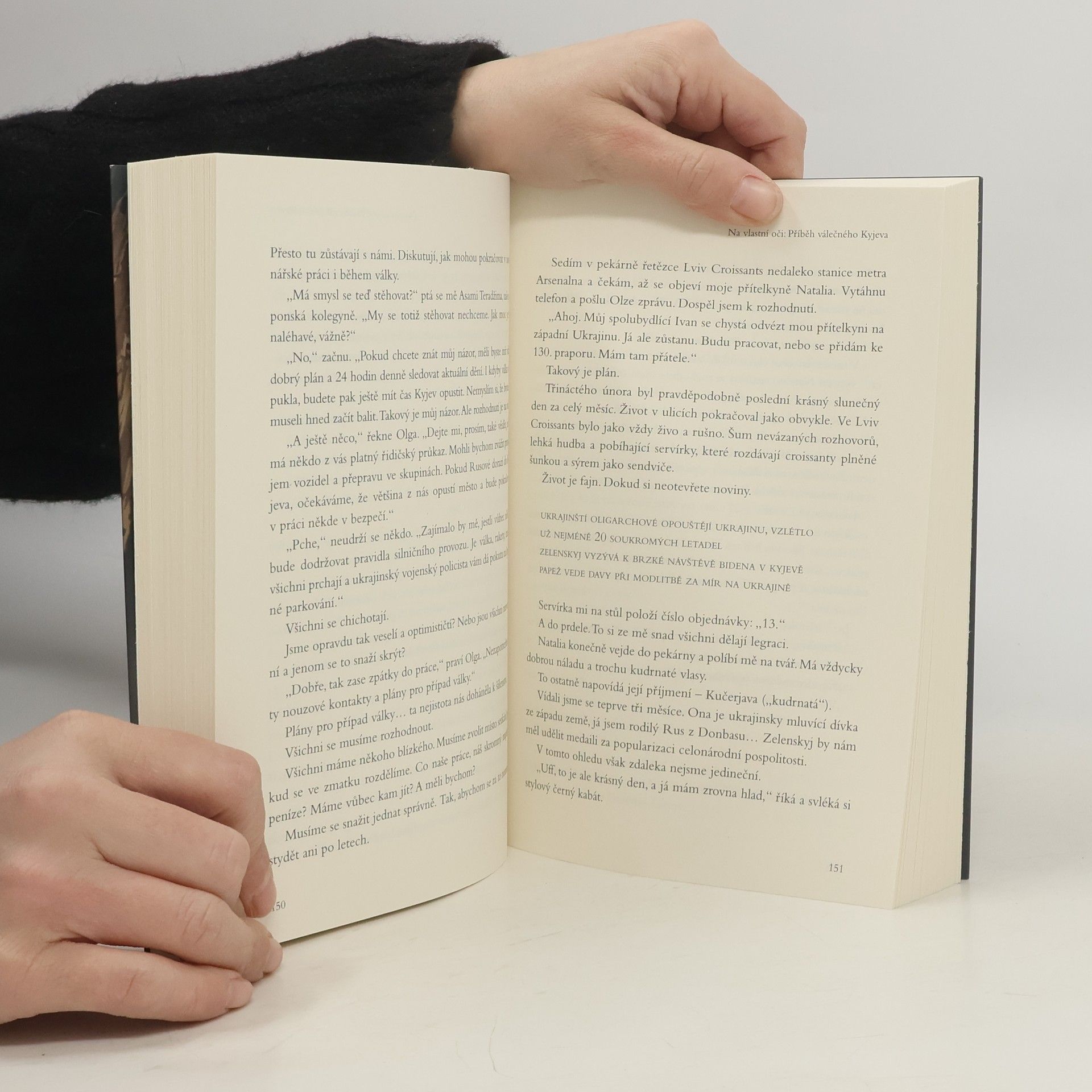 Ruská invaze na Ukrajinu očima známého novináře z Donbasu Datum 24. února 2022 vstoupilo do světových dějin. Tehdy po dlouhých letech začala v Evropě zuřit válka – na suverénní evropský stát zaútočilo Rusko a začalo jej okupovat. Rychle přibývalo mrtvých vojáků, civilních obětí, zničených domů, celých měst srovnaných se zemí. Demokratický svět na to všechno hleděl s nefalšovaným zděšením a řešil, jak napadné Ukrajině pomoct. O úspěchu „speciální vojenské operace“ do značné míry rozhodovalo, zda se okupantům podaří dobýt hlavní město Kyjev. Dnes už víme, že k nelibosti diktátora Vladimira Putina neuspěli a odhodlaným Ukrajincům se povedlo Kyjev ubránit. Alespoň prozatím. Prestižní německý týdeník Der Spiegel ho označil za nejznámějšího Ukrajince hned po prezidentovi Volodymyru Zelenském. Novinář Ilja Ponomarenko pochází z Donbasu a o válce začal psát dávno před osudným 24. únorem. Zblízka ji zprostředkovává více než 1,2 milionu lidí z celého světa, kteří ho sledují na sociální síti X. Všechno, co se zatím o válce dozvěděl, sepsal do knihy Na vlastní oči: Příběh válečného Kyjeva.