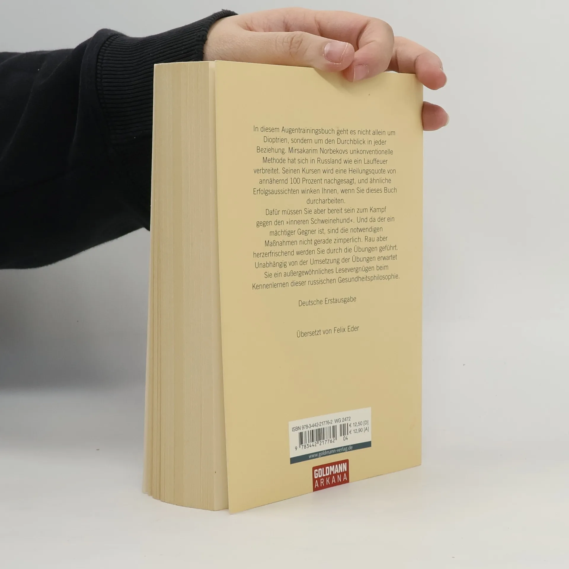 Bücher über Augentraining gibt es Dutzende. Aber wie viele Käufer dieser Bücher sie auch gelesen haben und wie viele davon jetzt auf ihre Brille verzichten können, darüber gibt es keine Zahlen. Vor diesem Hintergrund klingen die Versprechungen von Mirsakarim Norbekov fantastisch. Er behauptet, in seinen Kursen würde er eine Heilungsquote von annähernd 100 Prozent erreichen, und Ähnliches soll auch möglich sein, wenn man seine »Eselsweisheit« durcharbeitet. Den Schlüssel zum Durchblick findet der Autor im Kampf gegen den inneren Schweinehund. Und da das ein mächtiger Gegner ist, sind seine Maßnahmen nicht gerade zimperlich. Er provoziert den Leser, bis er lacht oder flucht, je nachdem. Erst wenn er den Leser richtig durchgeschüttelt hat, gestattet er ihm, die erste Übung für die Augen zu machen, und erreicht damit auf alle Fälle eines: Auch jemand, er sich nicht ernstlich mit dem Gedanken trägt, seine Brille loszuwerden, hat schon gewonnen. Denn er wird entschädigt mit Lesevergnügen pur.Der riesige Erfolg, den Norbekovs Bücher in Russland haben, dürfte nicht zuletzt auf der einzigartigen Kombination von Unterhaltung und potenter Sachinformation beruhen.