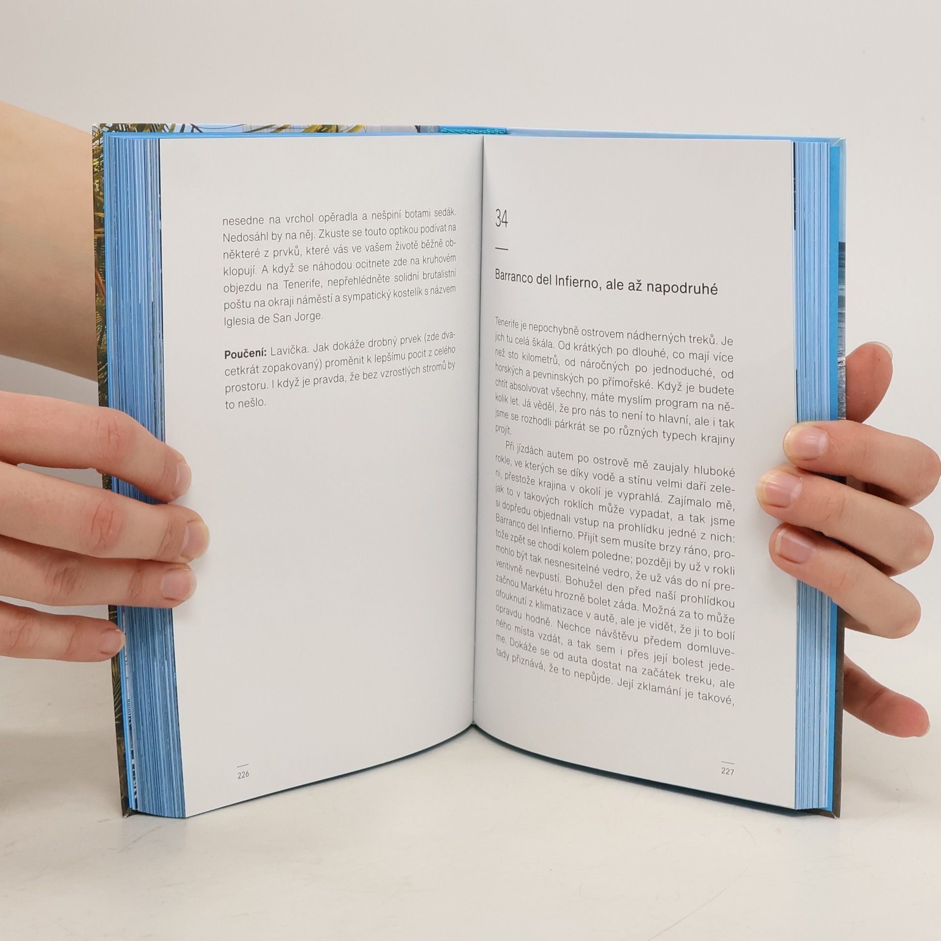 „Kanárské ostrovy. Jejich jméno jsem slýchával často jako dítě začátkem 90. let. Představovaly vzdálený svět, který ke mně promlouval skrz barevné letáky cestovních kanceláří s příšernou typografií. Kombinace bílých hotelových komplexů, modré oblohy a ještě modřejších bazénů. Svět, který se mi jevil jako naprosto nedostupný. Ale tohle všechno dokázal změnit jeden telefonát.“ Architekt Adam Gebrian se vydal se svou ženou Markétou a téměř sedmiletým synem Filipem na Tenerife. Jeho čtvrtá kniha svým formátem navazuje na předchozí úspěšné publikace, ale tentokrát se – nečekaně – odehrává převážně mimo město.