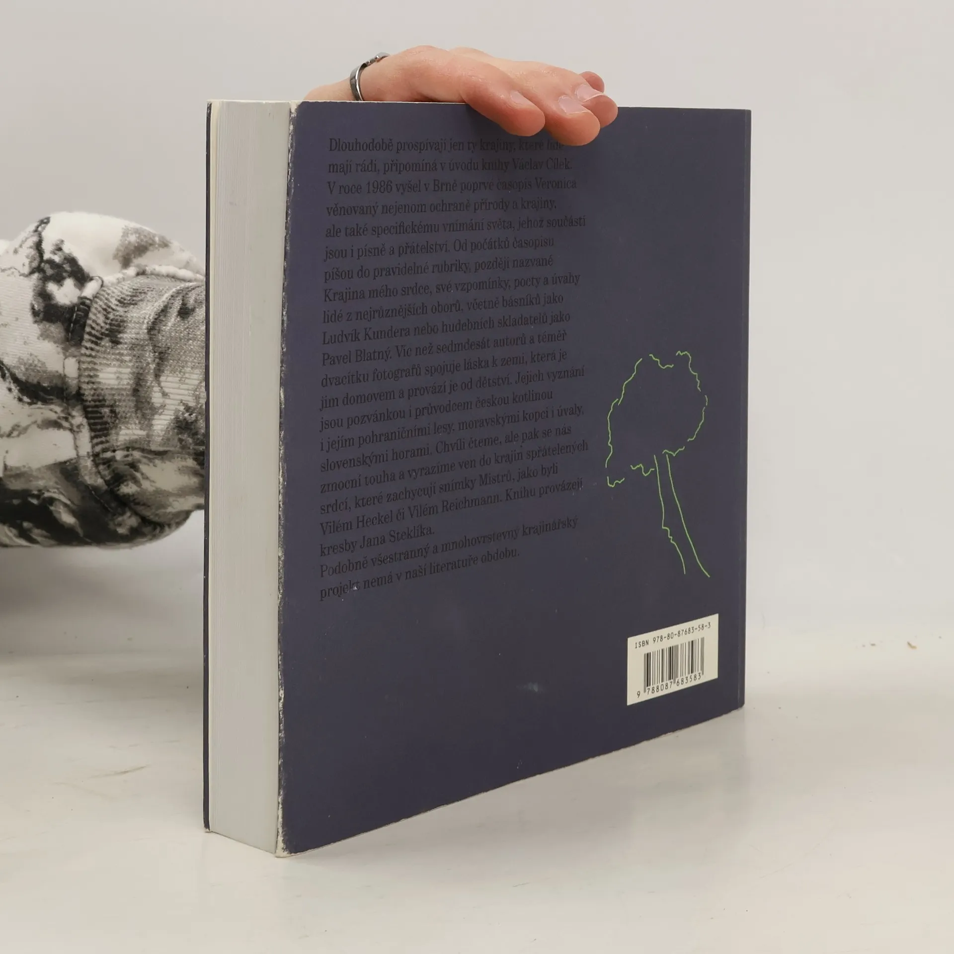 Dlouhodobě prospívají jen ty krajiny, které lidé mají rádi, připomíná v úvodu knihy Václav Cílek. V roce 1986 vyšel v Brně poprvé časopis Veronica věnovaný nejenom ochraně přírody a krajiny, ale také specifickému vnímání světa, jehož součástí jsou i písně a přátelství. Od počátků časopisu píšou do pravidelné rubriky, později nazvané Krajina mého srdce, své vzpomínky, pocty a úvahy lidé z nejrůznějších oborů, včetně básníků jako Ludvík Kundera nebo hudebních skladatelů jako Pavel Blatný. Víc než sedmdesát autorů a téměř dvacítku fotografů spojuje láska k zemi, která je jim domovem a provází je od dětství. Jejich vyznání jsou pozvánkou i průvodcem českou kotlinou i jejím pohraničními lesy, moravskými kopci i úvaly, slovenskými horami. Chvíli čteme, ale pak se nás zmocní touha a vyrazíme ven do krajin spřátelených srdcí, které zachycují snímky Mistrů, jako byli Vilém Heckel či Vilém Reichmann. Knihu provázejí kresby Jana Steklíka. Podobně všestranný a mnohovrstevný krajinářský projekt nemá v naší literatuře obdob