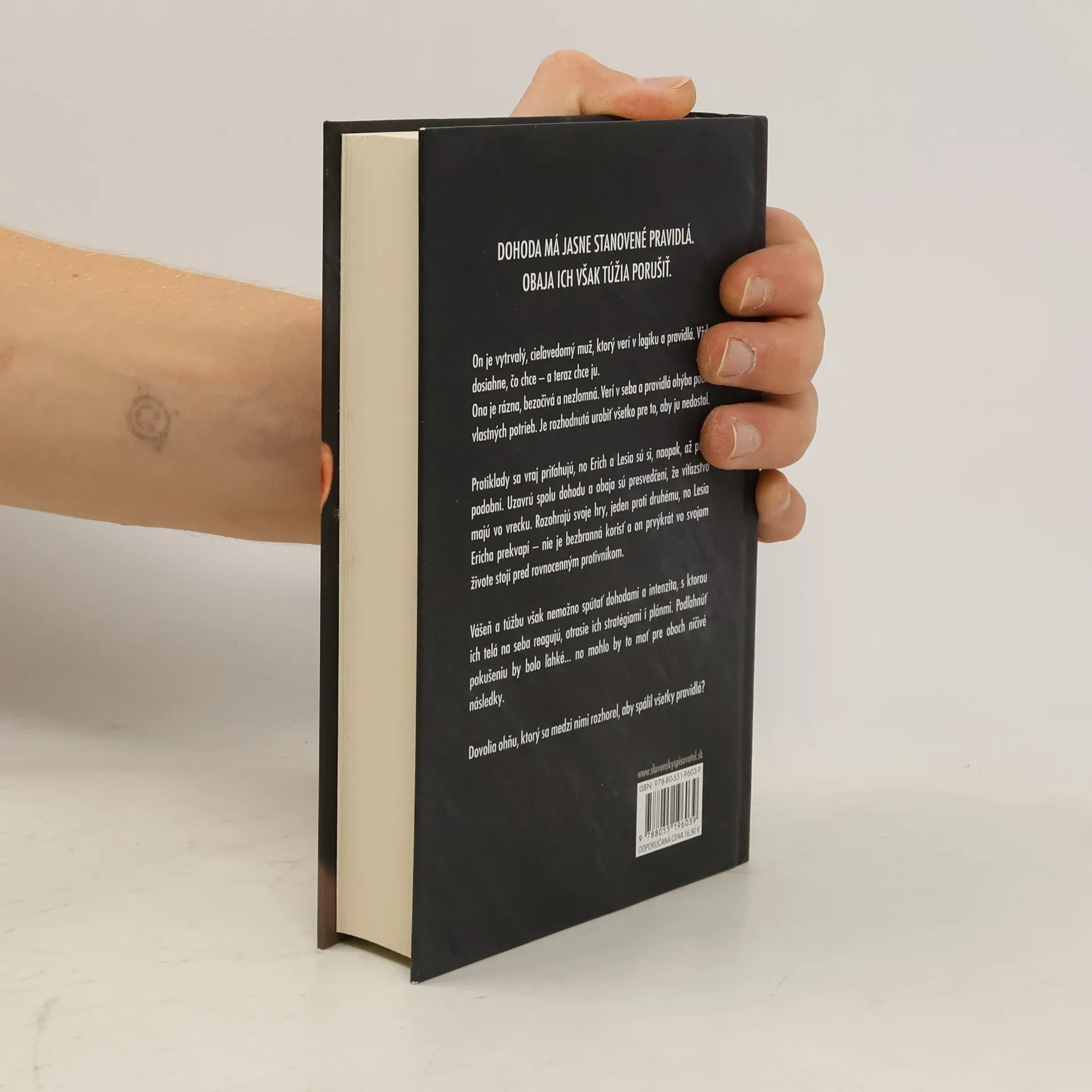 Dohoda má jasne stanovené pravidlá. Obaja ich však túžia porušiť. On je vytrvalý, cieľavedomý muž, ktorý verí v logiku a pravidlá. Vždy dosiahne, čo chce – a teraz chce ju. Ona je rázna, bezočivá a nezlomná. Verí v seba a pravidlá ohýba podľa vlastných potrieb. Je rozhodnutá urobiť všetko pre to, aby ju nedostal. Protiklady sa vraj priťahujú, no Erich a Lesia sú si, naopak, až príliš podobní. Uzavrú spolu dohodu a obaja sú presvedčení, že víťazstvo majú vo vrecku. Rozohrajú svoje hry, jeden proti druhému, no Lesia Ericha prekvapí – nie je bezbranná korisť a on prvýkrát vo svojom živote stojí pred rovnocenným protivníkom. Vášeň a túžbu však nemožno spútať dohodami a intenzita, s ktorou ich telá na seba reagujú, otrasie ich stratégiami i plánmi. Podľahnúť pokušeniu by bolo ľahké… no mohlo by to mať pre oboch ničivé následky. Dovolia ohňu, ktorý sa medzi nimi rozhorel, aby spálil všetky pravidlá?