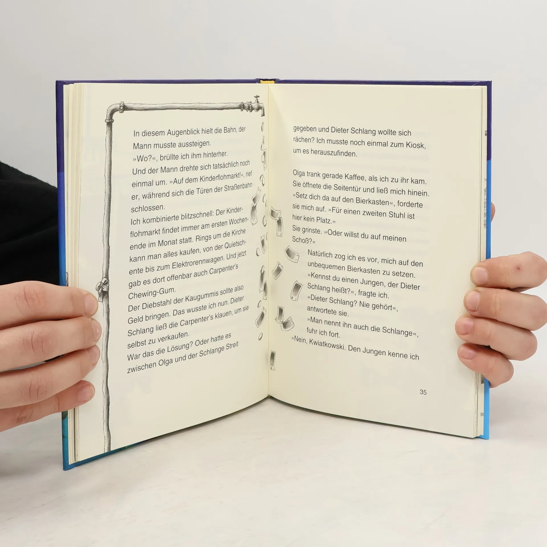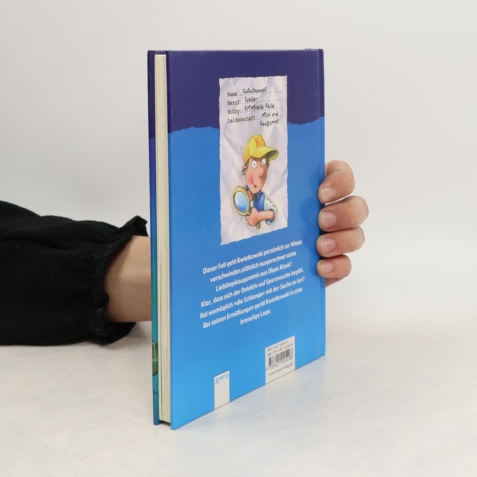 Kwiatkowski ist ein Junge, betätigt sich gerne als Privatdetektiv und vor allem liebt er Kaugummis einer ganz bestimmten Marke. Genau diese Marke fehlt eines Tages in Olgas Kiosk; obwohl sie immer neue bestellt, verschwinden die Kaugummis dauernd. Dies ist ein Fall für Kwiatkowski. Eine witzig geschriebene, unblutige Detektivgeschichte mit vielen schwarz-weiss Bildern. (Quelle: Verzeichnis ZKL).
