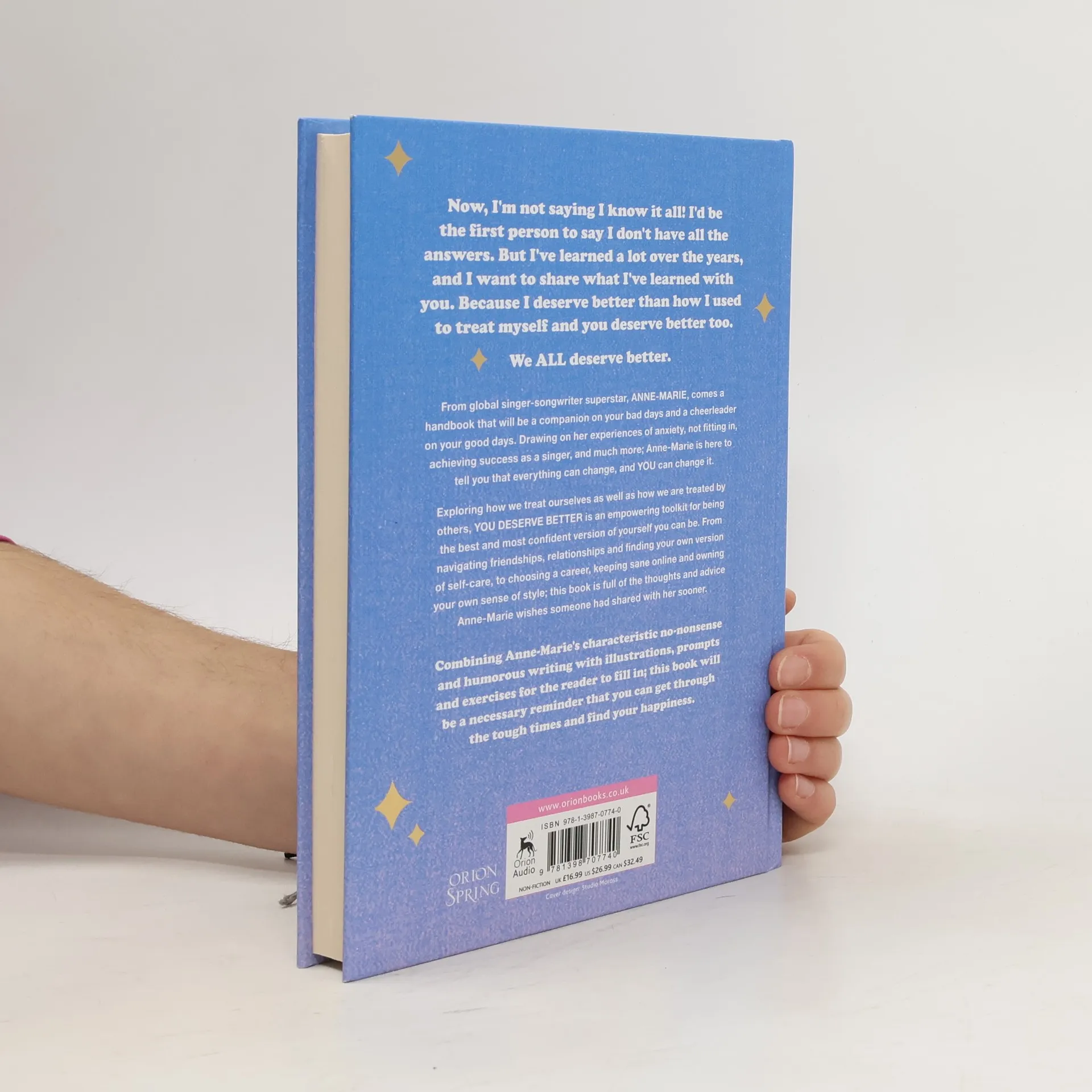 Sometimes it feels so hard to love yourself. We worry that we're not good enough or we're being selfish if we take time to prioritise what we need. But self-love is so important and even if we're our own biggest critic, it can be done! You deserve better xxxHands up if you're fed up with being told you need to go on this diet, you need to behave this way, or you probably shouldn't wear this outfit...the list goes ooooon.Anne-Marie's been told these things her whole life too and they didn't make her feel any better. But now, she's discovered the simple tools that mean she treats herself with the love and respect she needs and this, in turn, means she's able to go out into the world and be as strong, confident and true to herself as she can be. And she wants YOU to be able to do the same.You Deserve Better is the must-read book from singer-songwriter Anne-Marie that doesn't give you fluffy promises about self-care but speaks honestly about body image, mental health, being successful at work and more. It's the real advice that every person needs to hear to be happier in themselves and in the world. Cause you know what?YOU DESERVE BETTER.
