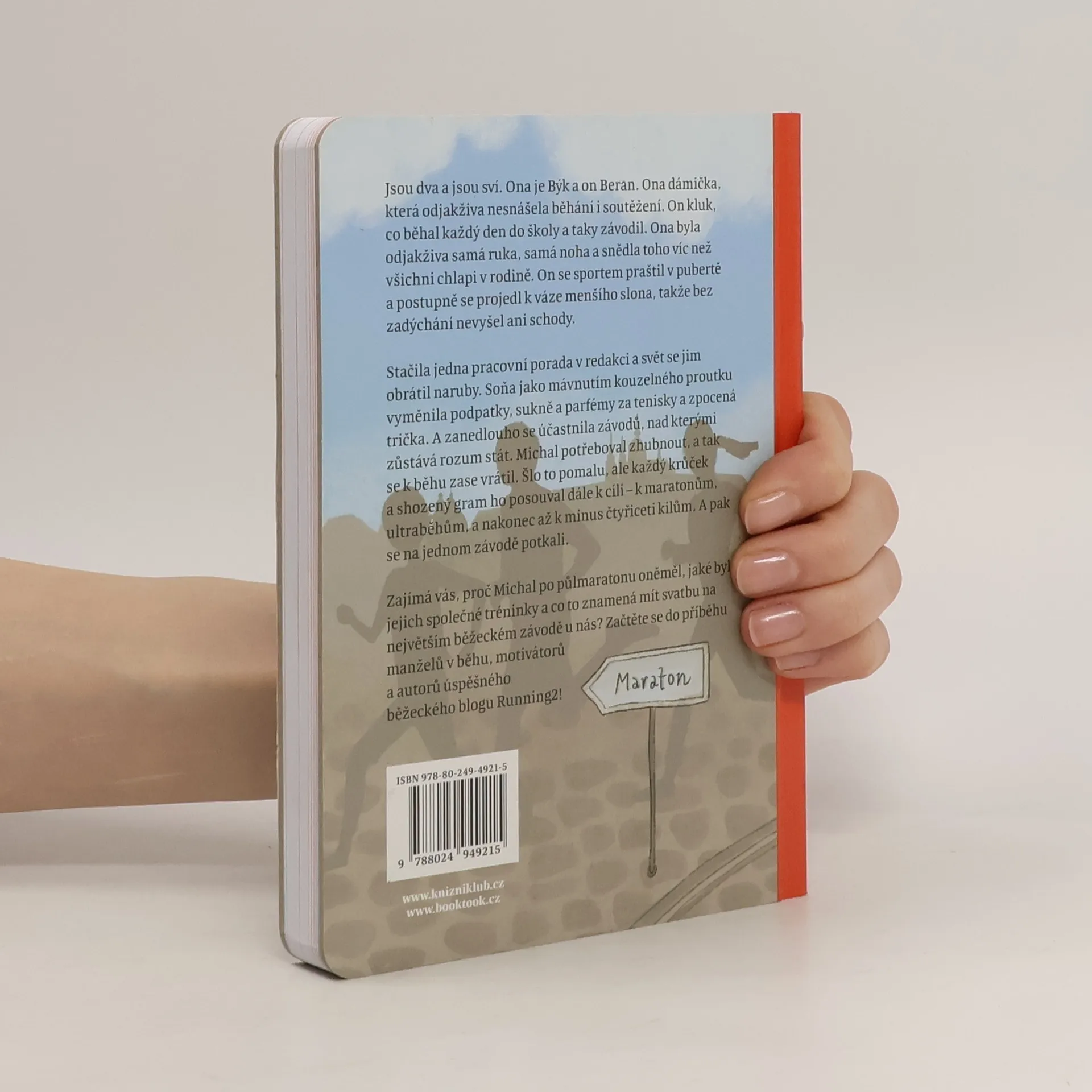 Jsou dva a jsou sví. Ona je Býk a on Beran. Ona dámička, která odjakživa nesnášela běhání i soutěžení. On kluk, co běhal každý den do školy a taky závodil. Ona byla odjakživa samá ruka, samá noha a snědla toho víc než všichni chlapi v rodině. On se sportem praštil v pubertě a postupně se projedl k váze menšího slona, takže bez zadýchání nevyšel ani schody. Stačila jedna pracovní porada v redakci a svět se jim obrátil naruby. Soňa jako mávnutím kouzelného proutku vyměnila podpatky, sukně a parfémy za tenisky a zpocená trička. A zanedlouho se účastnila závodů, nad kterými zůstává rozum stát. Michal potřeboval zhubnout, a tak se k běhu zase vrátil. Šlo to pomalu, ale každý krůček a shozený gram ho posouval dále k cíli – k maratonům, ultraběhům, a nakonec až k minus čtyřiceti kilům. A pak se na jednom závodě potkali. Zajímá vás, proč Michal po půlmaratonu oněměl, jaké byly jejich společné tréninky a co to znamená mít svatbu na největším běžeckém závodě u nás? Začtěte se do příběhu manželů v běhu, motivátorů a autorů úspěšného běžeckého blogu Running2!
