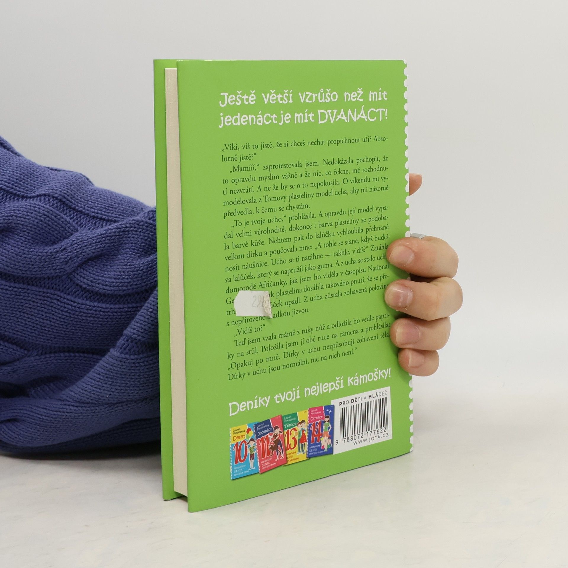 Ještě větší vzrůšo než mít jedenáct je mít DVANÁCT! Viki, veselá, milá a vtipná hrdinka úspěšné knihy JEDENÁCT, je zase o rok starší a dospělejší. Ovšem její někdy spíše úsměvné, jindy vážnější trable a nedorozumění s rodiči, sourozenci, ale hlavně kamarádkami současnými i bývalými a těmi, s nimiž se nikdy přátelit nehodlá, jí život rozhodně neulehčují. Viki zjišťuje, jak hořce chutná zrada ze strany blízkého člověka, ale zakouší i stud nad svým chováním, když i ona dokáže ublížit. A navíc si musí zvyknout na spoustu novinek, jako jsou například lesky na rty, noví spolužáci, letní tábory, ženské prádlo a hlavně KLUCI!